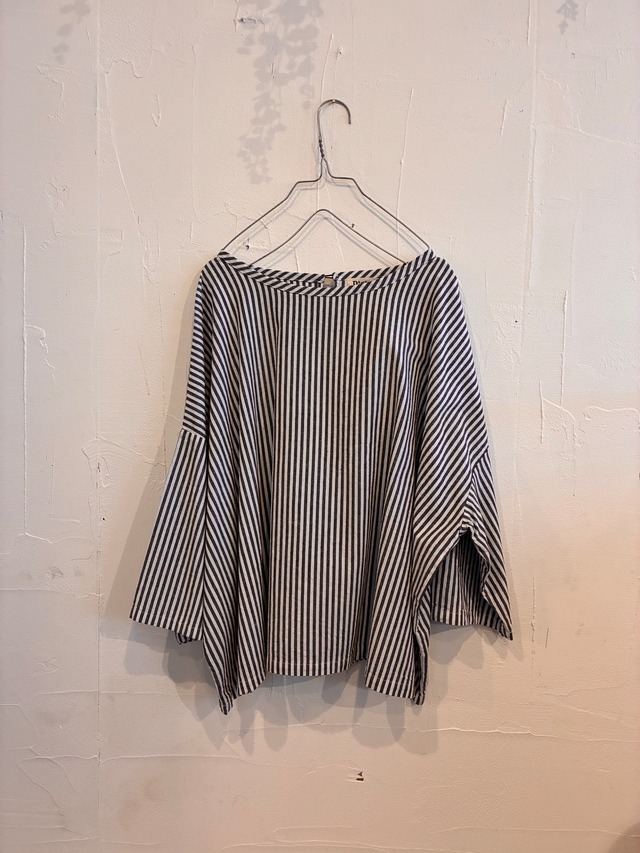 ハリ感のあるさらりとした素材感のプルオーバーブラウス。 後ろ首元はループボタン開きでドロップショルダーのシルエットは女性らしい柔らかな印象です。 シンプルで使いやすいプルオーバーブラウスは柄違いで揃えても♪ 【サイズ・寸法】 L:着丈61 肩幅73 身幅153 袖丈26 LL:着丈62 肩幅74 身幅158 袖丈27 【素材・成分】コットン100% 【生産地】中国 ★この商品は、単品でのご注文に限り、クリックポストでの発送が可能です。