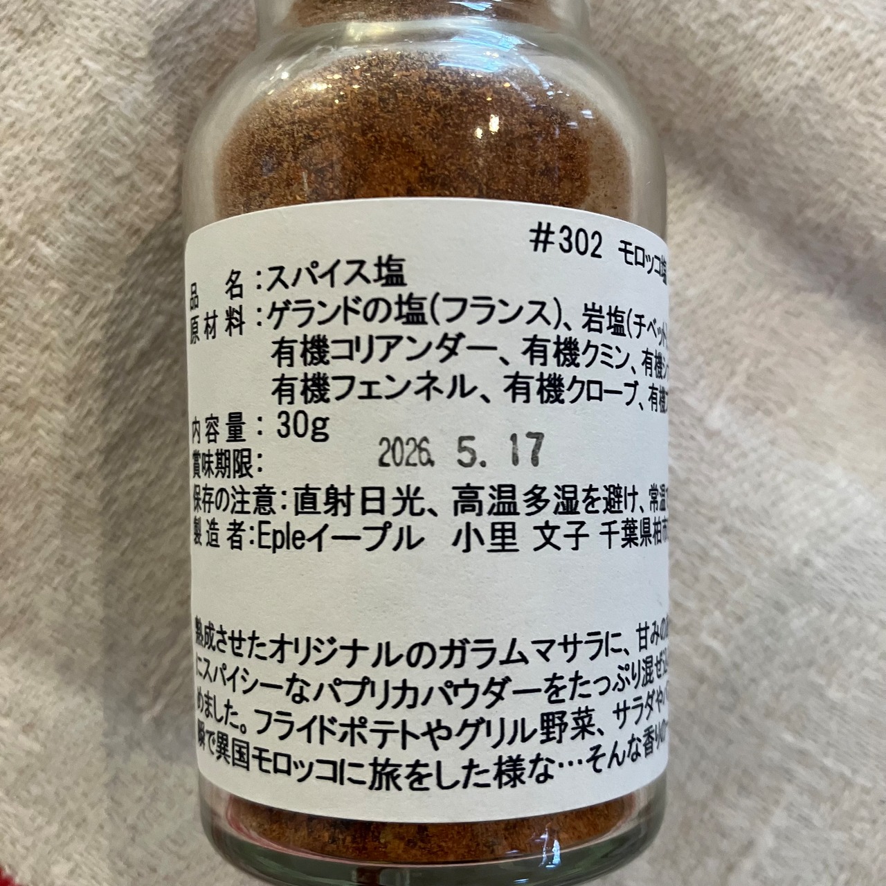 熟成させたオリジナルのガラムマサラに、モロッコでは定番スパイス(クミンを更に加え、辛みはないのにスパイシーなパプリカパウダー、甘みや旨味のある韓国唐辛子(チリ))を混ぜ合わせ、うま味たっぷりの岩塩でまとめました。