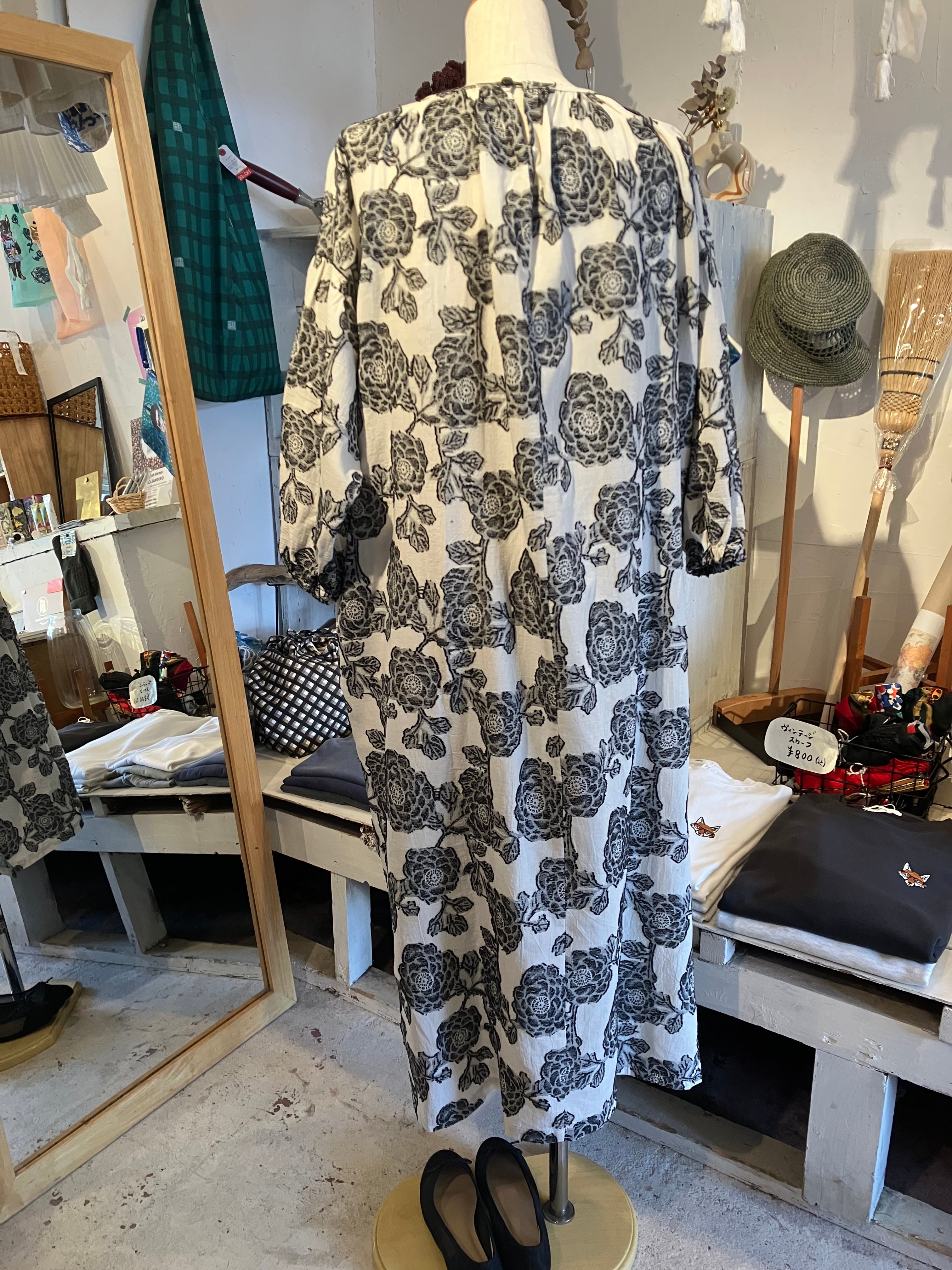 立体感のあるモノトーンの花柄が印象的な、ジャガード織総柄生地のワンピース。