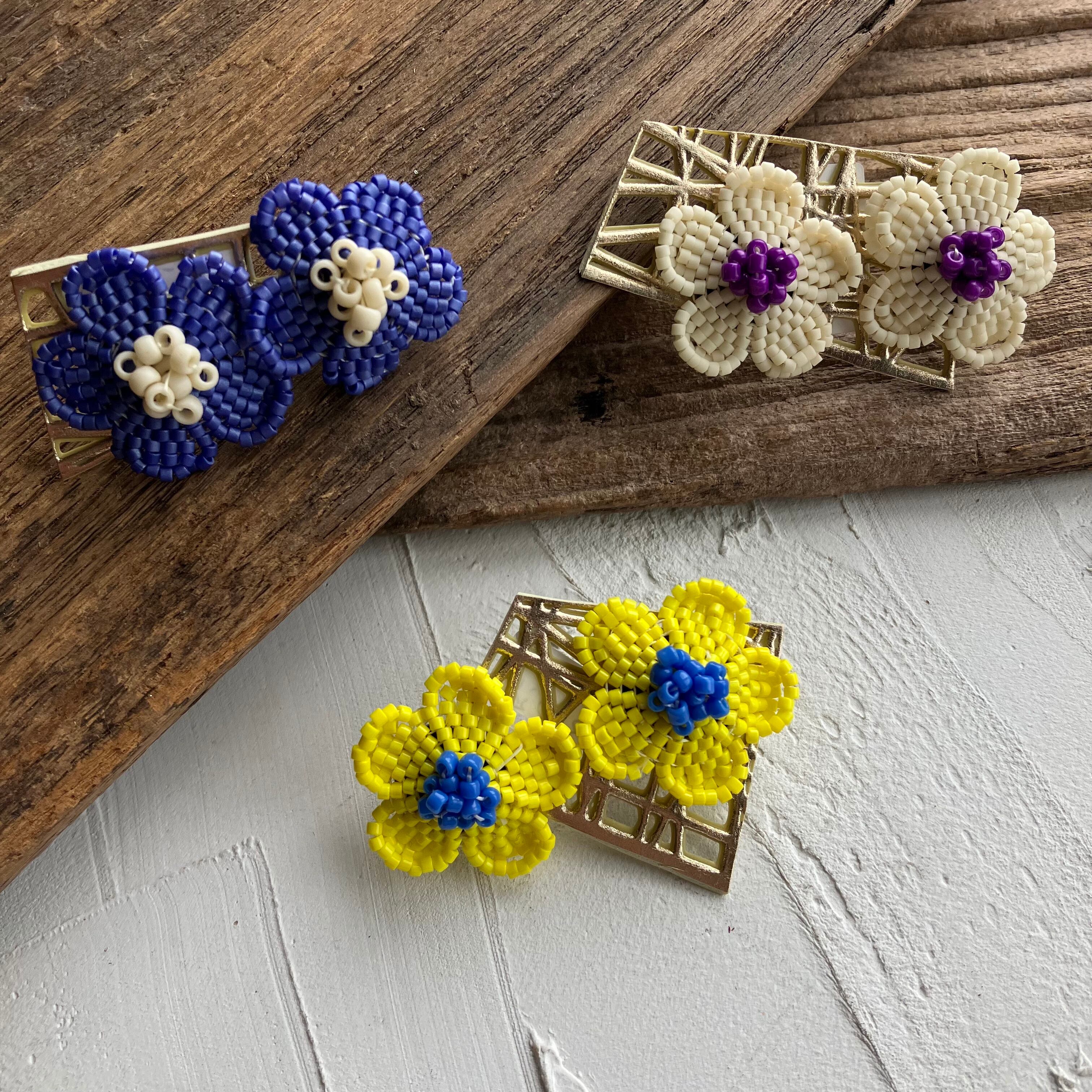 ビーズのお花ピアス、ちょっと小ぶりで付けやすいタイプも新登場です。