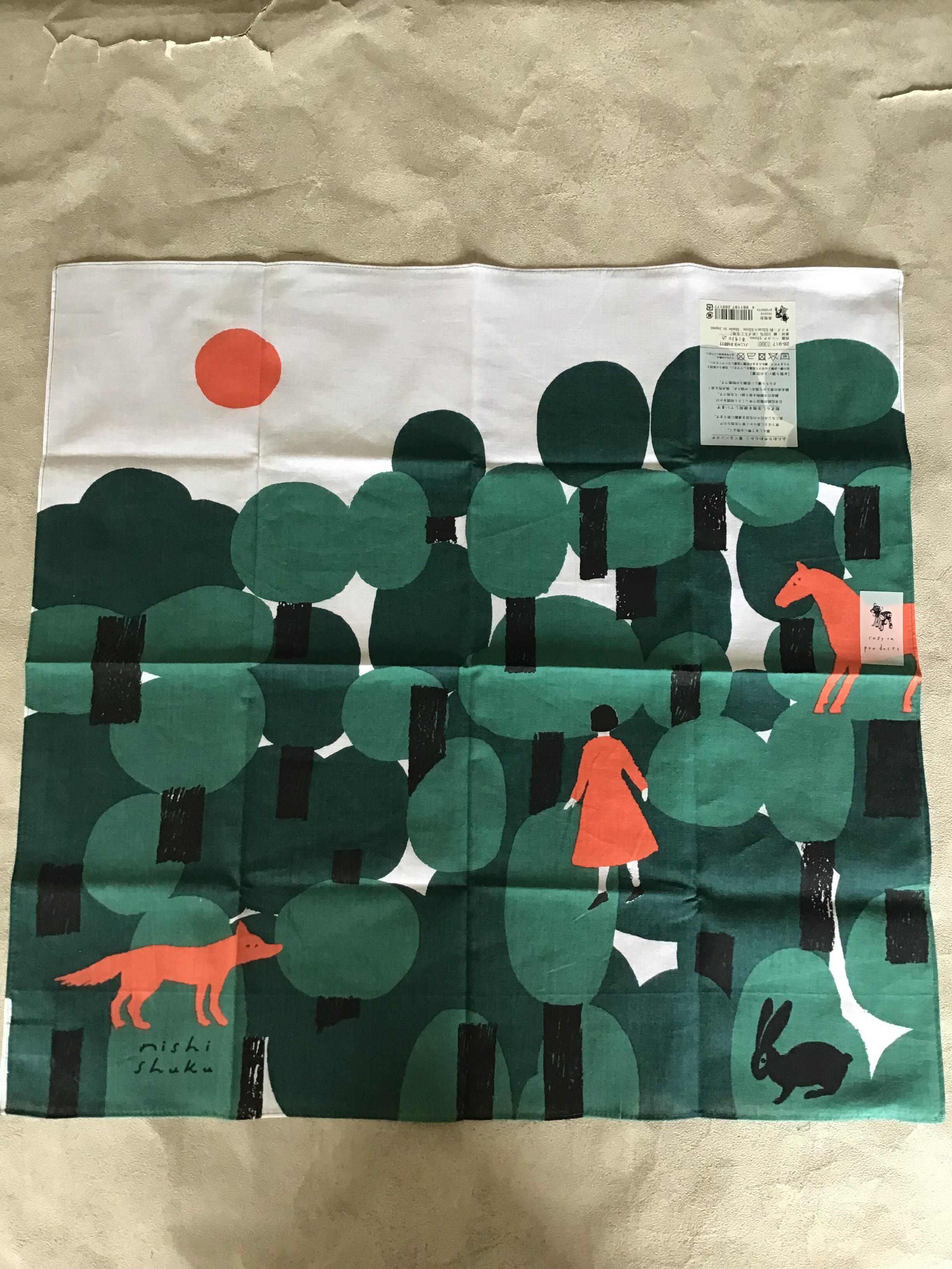 静かな森の様子が描かれた、西淑のハンカチ☆