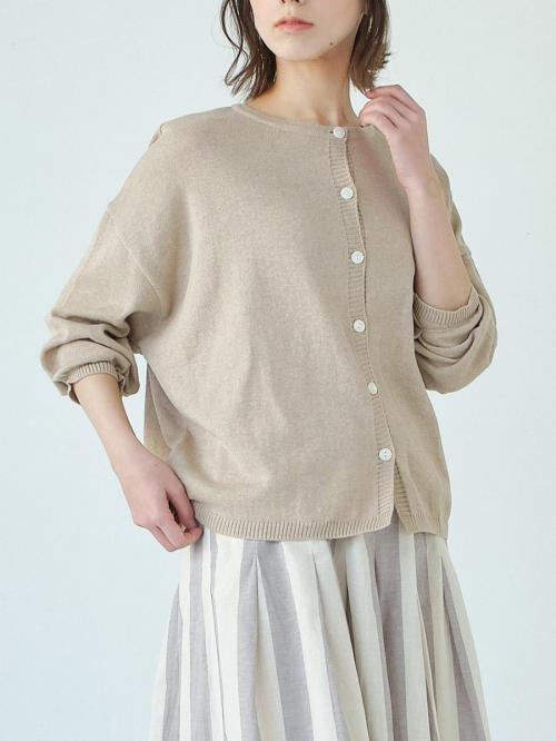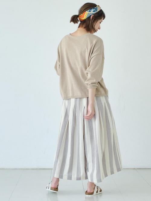 素材には清涼感の高さと肌触りの良さを兼ね備えた綿×麻ニットを使用、ゆったりとしたリラックス感のあるシルエットも、この商品の特徴となります。