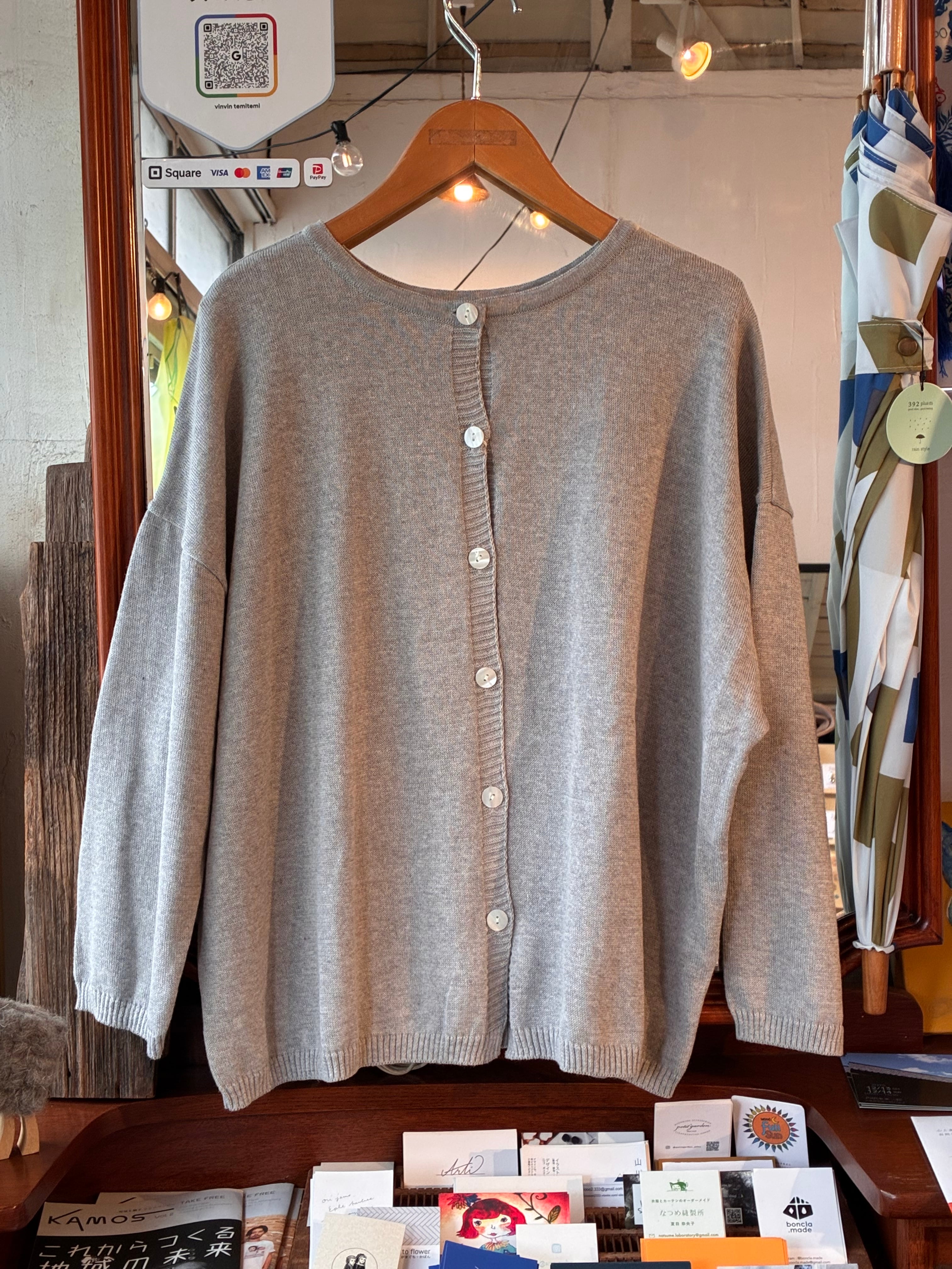 ボタンを前にしても後ろにしても着ることが出来る2WAYタイプのカーディガン。