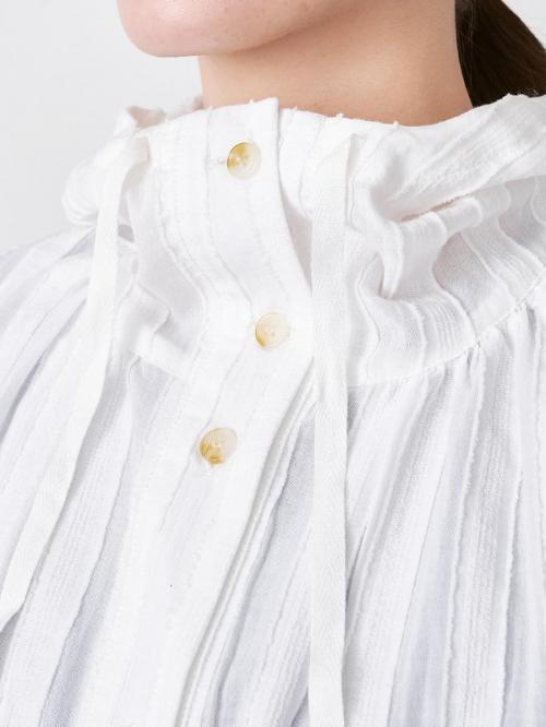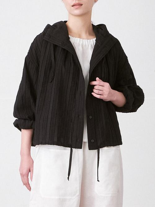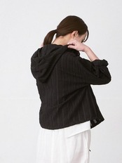 生地に表情のある綿ドビーストライプ生地のフードジャケット。