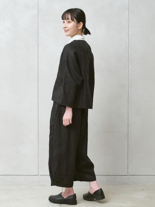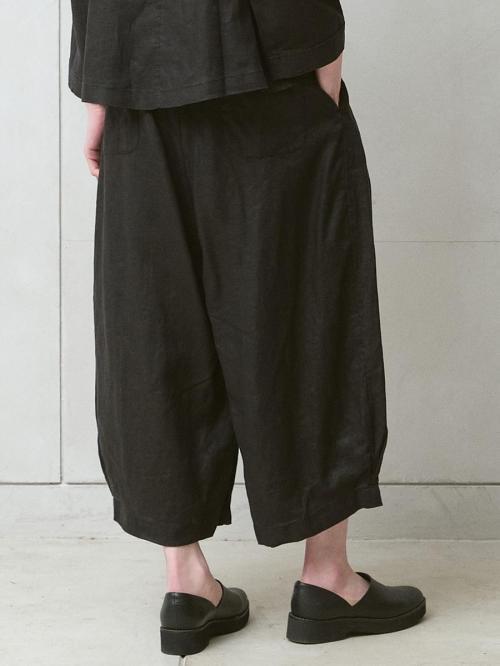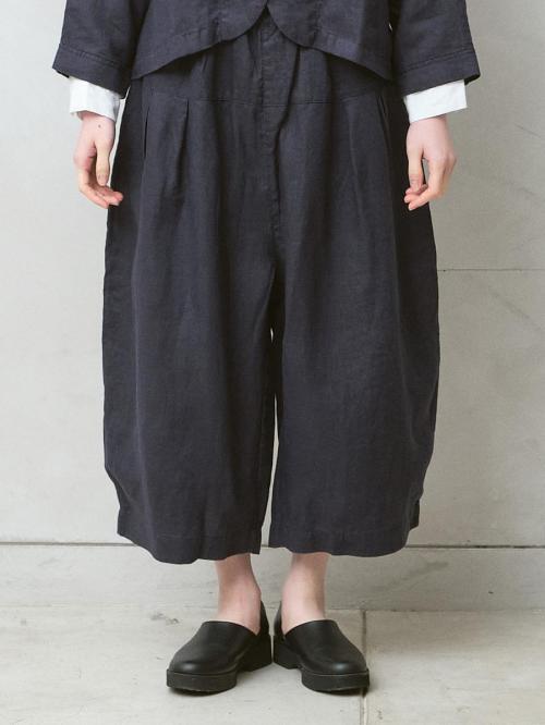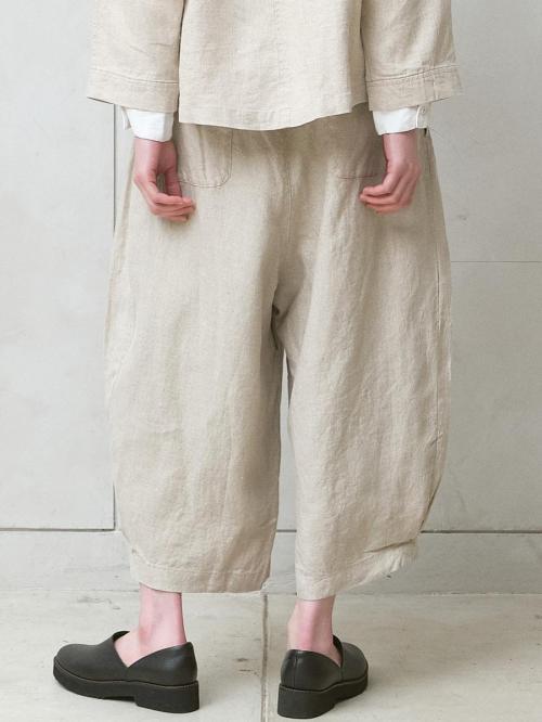 しっかりとしたハリ感のあるリネンオックスの上質な素材で仕立てたパンツ。
