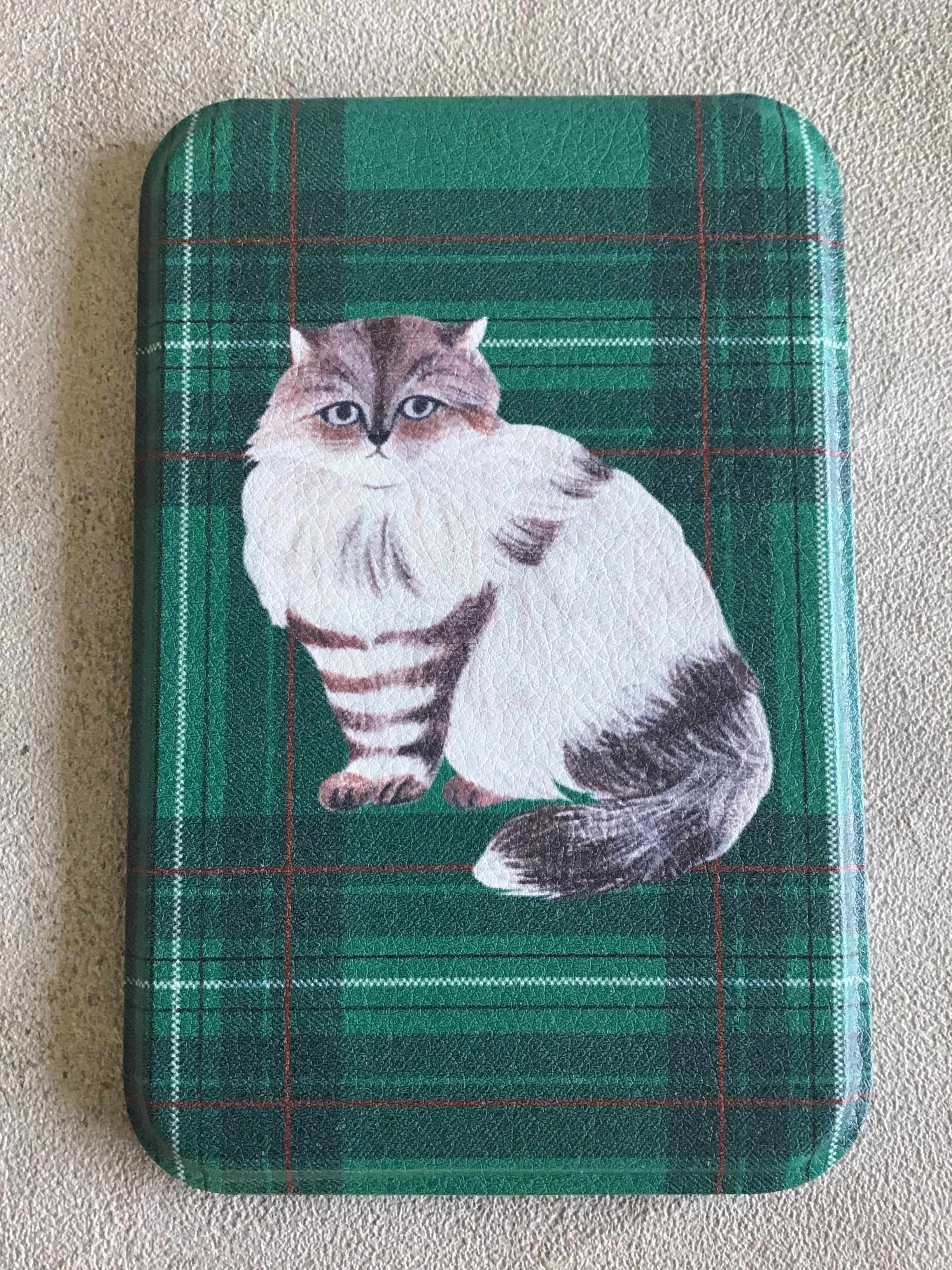 カバーにはリラックスした表情のネコたちがあしらわれていて、裏面はさりげないワンポイントのモチーフをデザインしています。