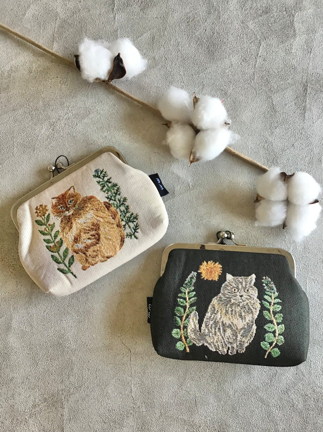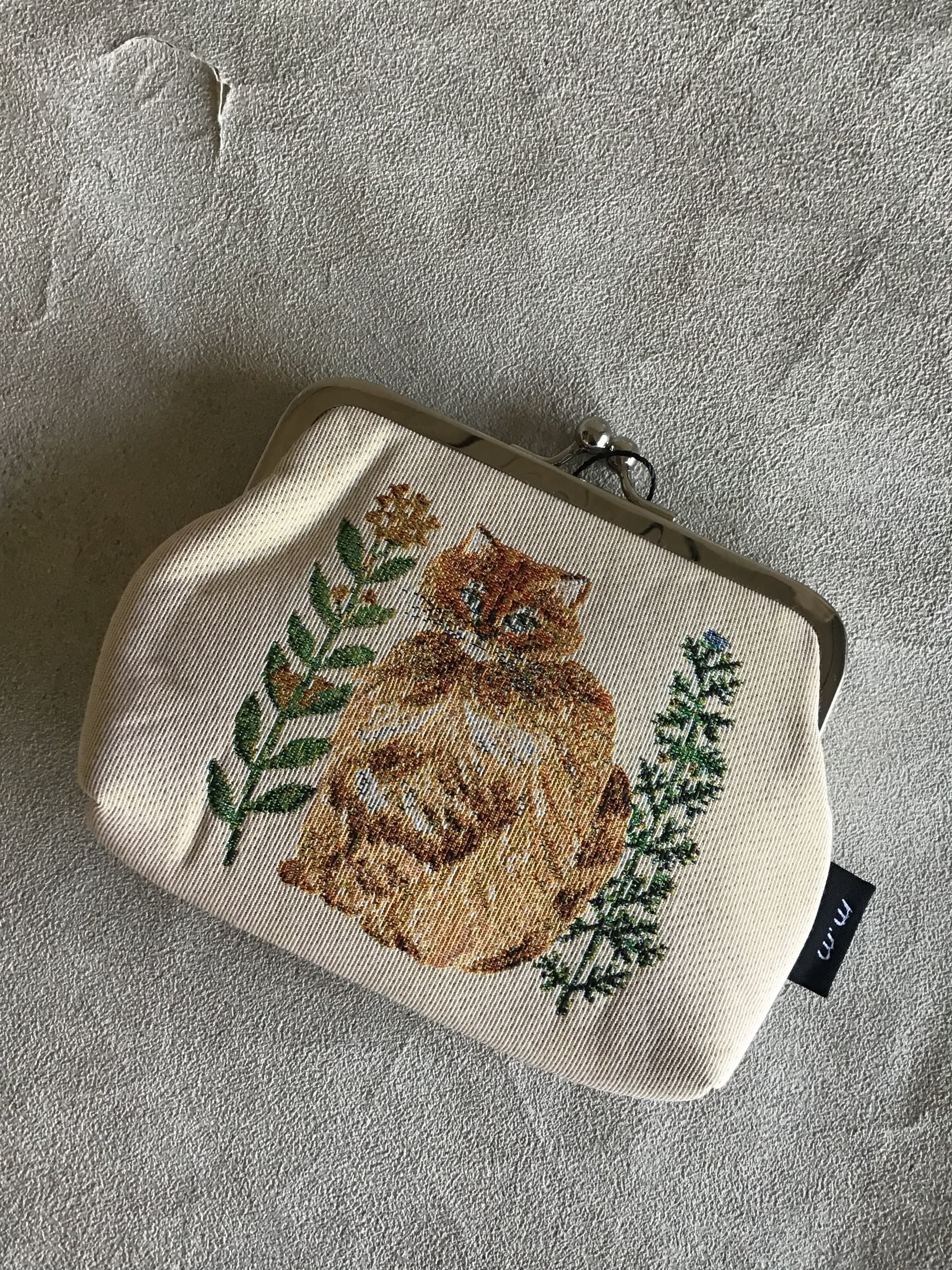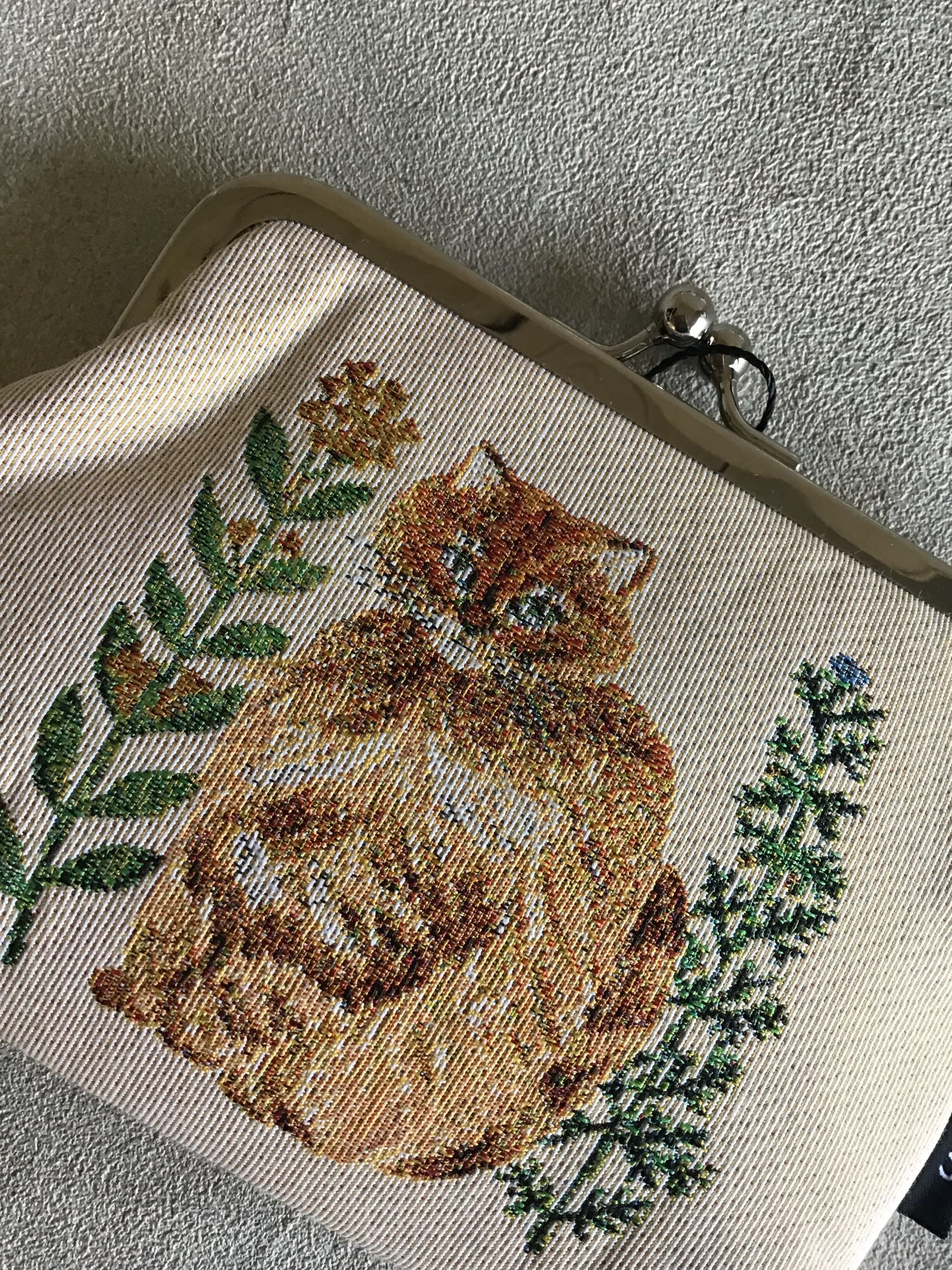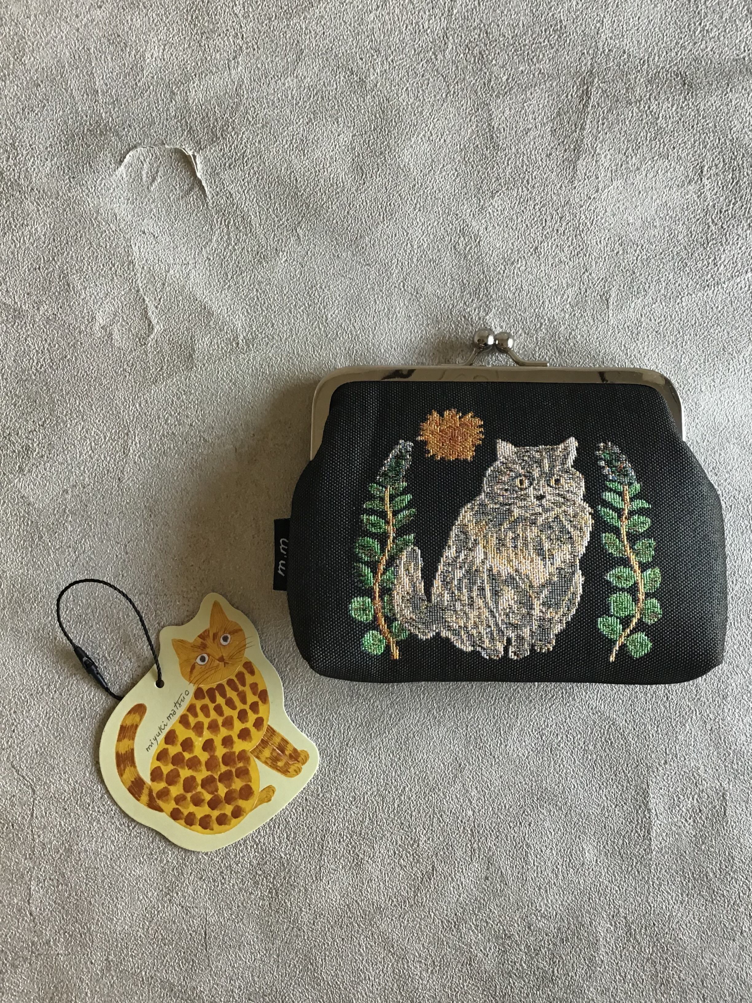 イラストレーター松尾みゆきさんの描く猫たちの可愛いがま口ポーチです。