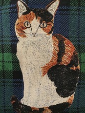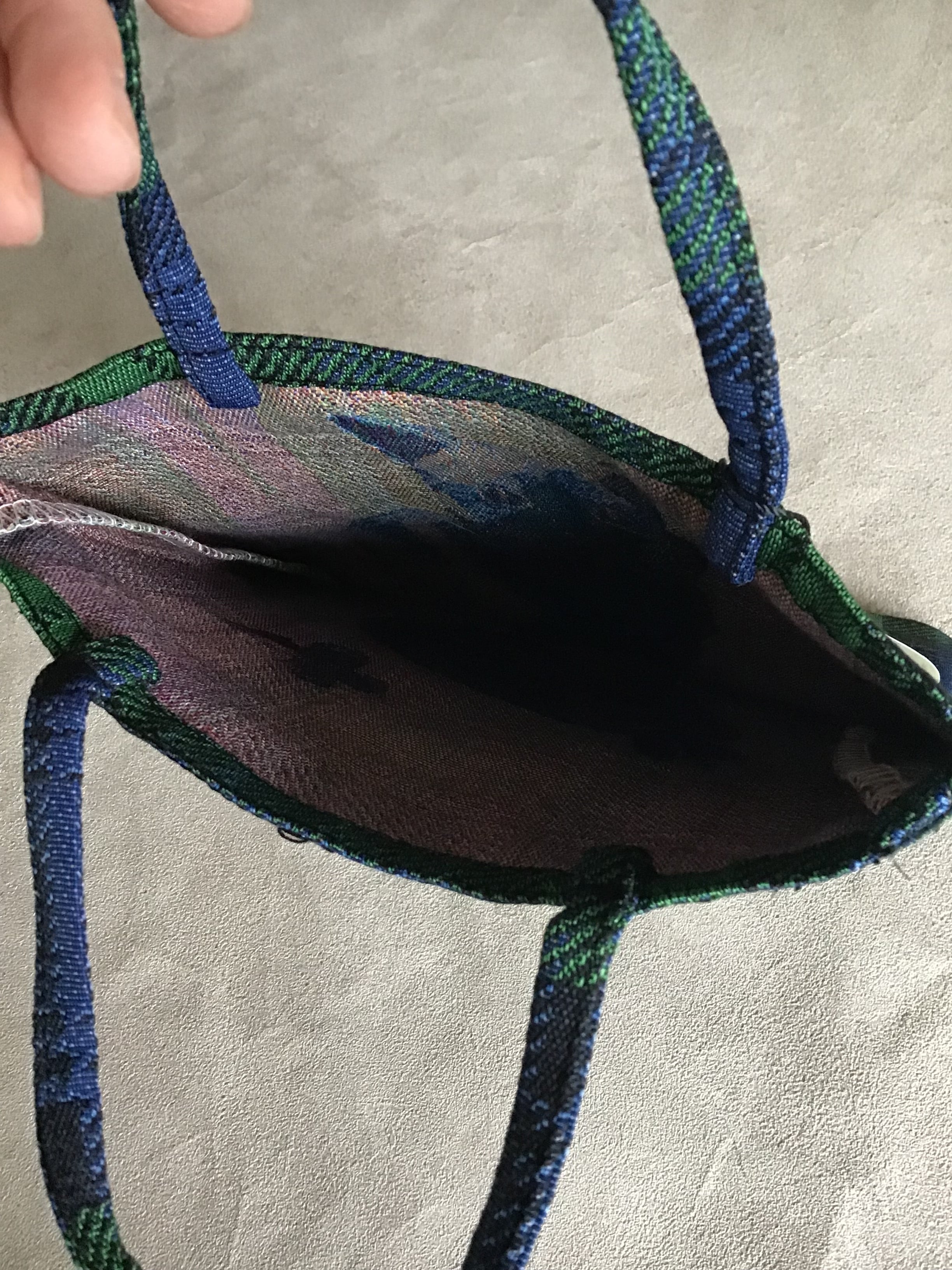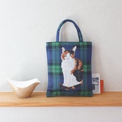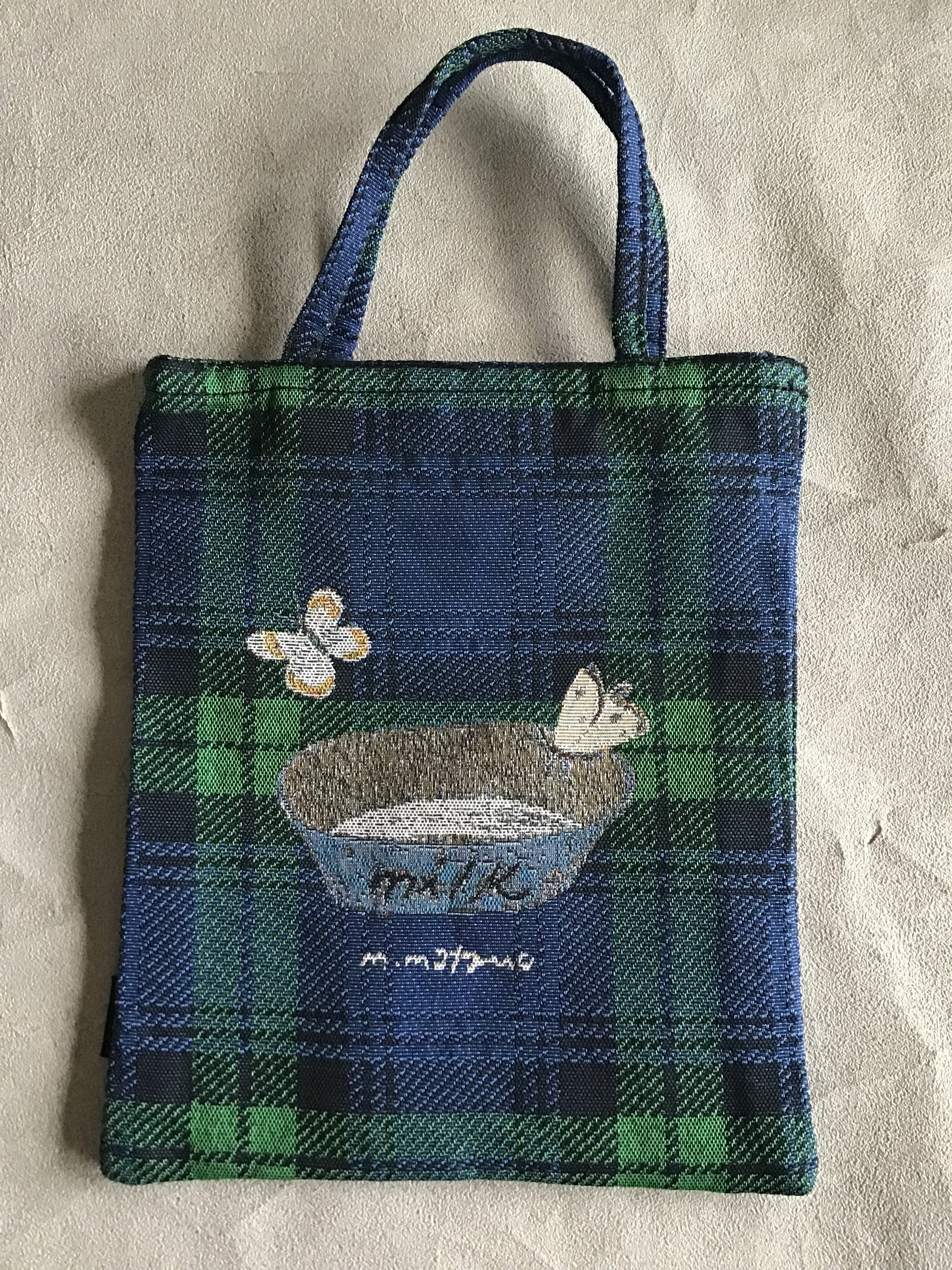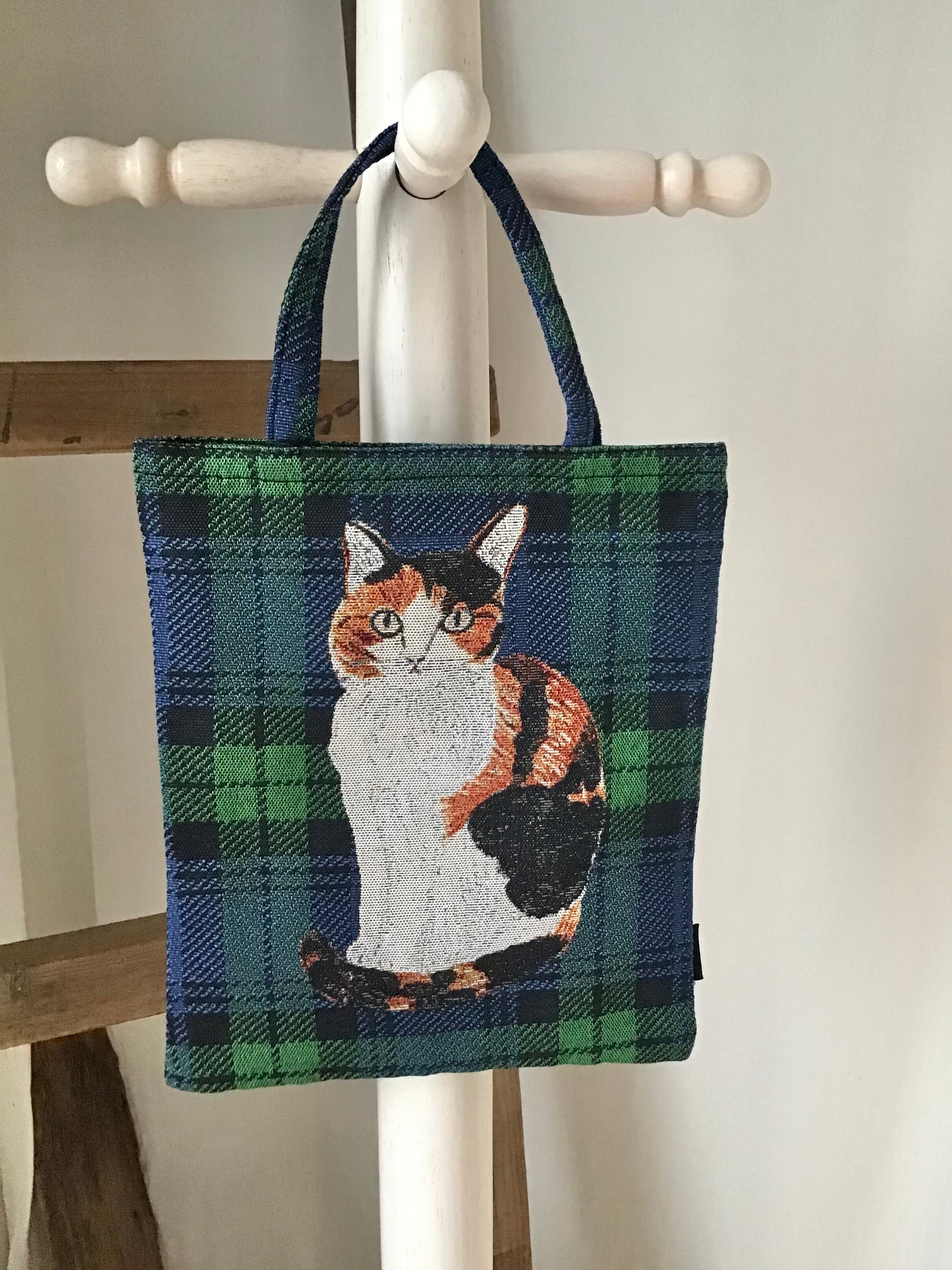 松尾ミユキさんが描く、キュートなネコが織り込まれたゴブラン織のミニバッグ。