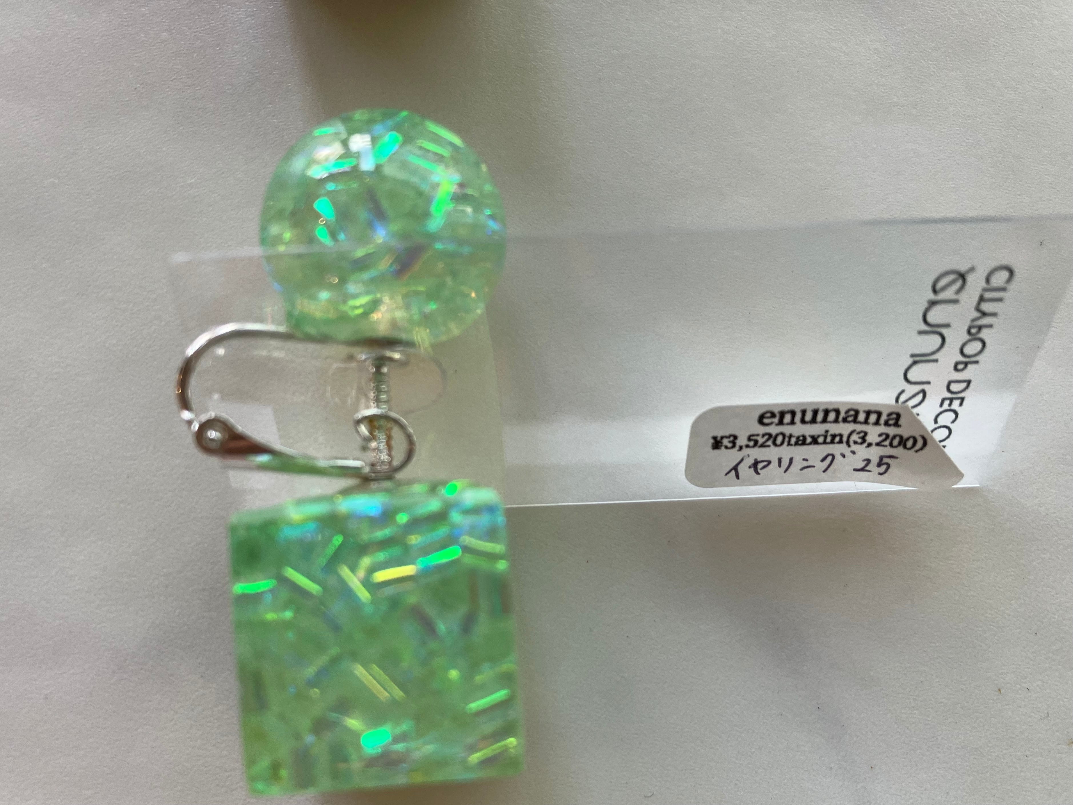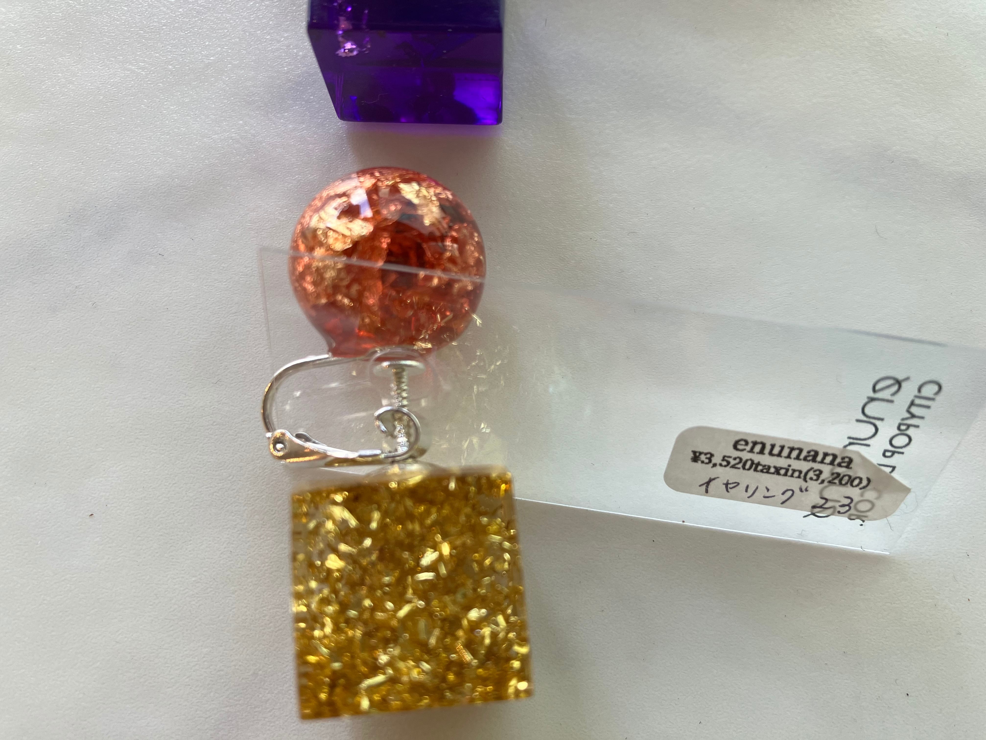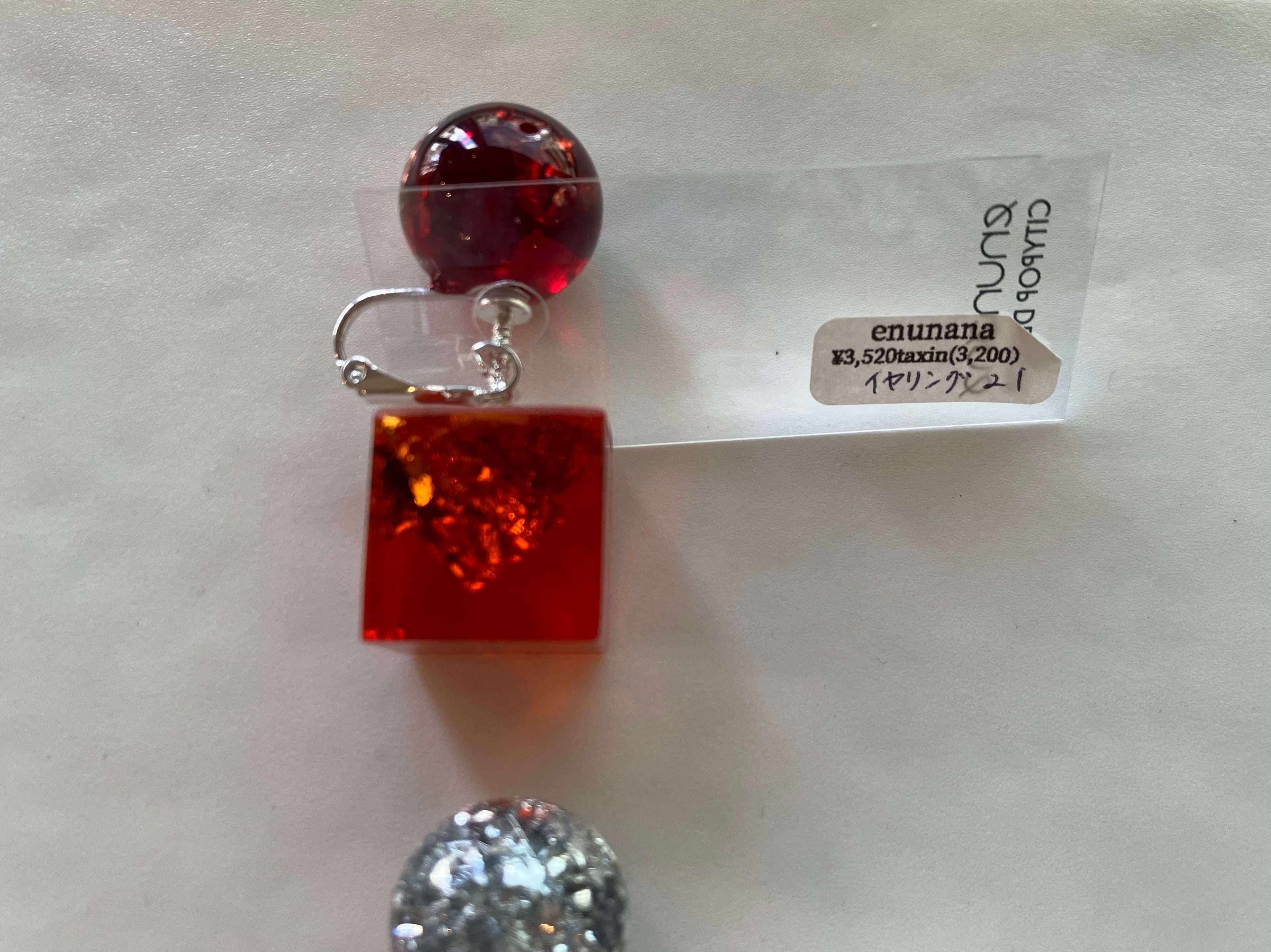 アクリルのキューブとボールが合体した、enunana定番イヤリング