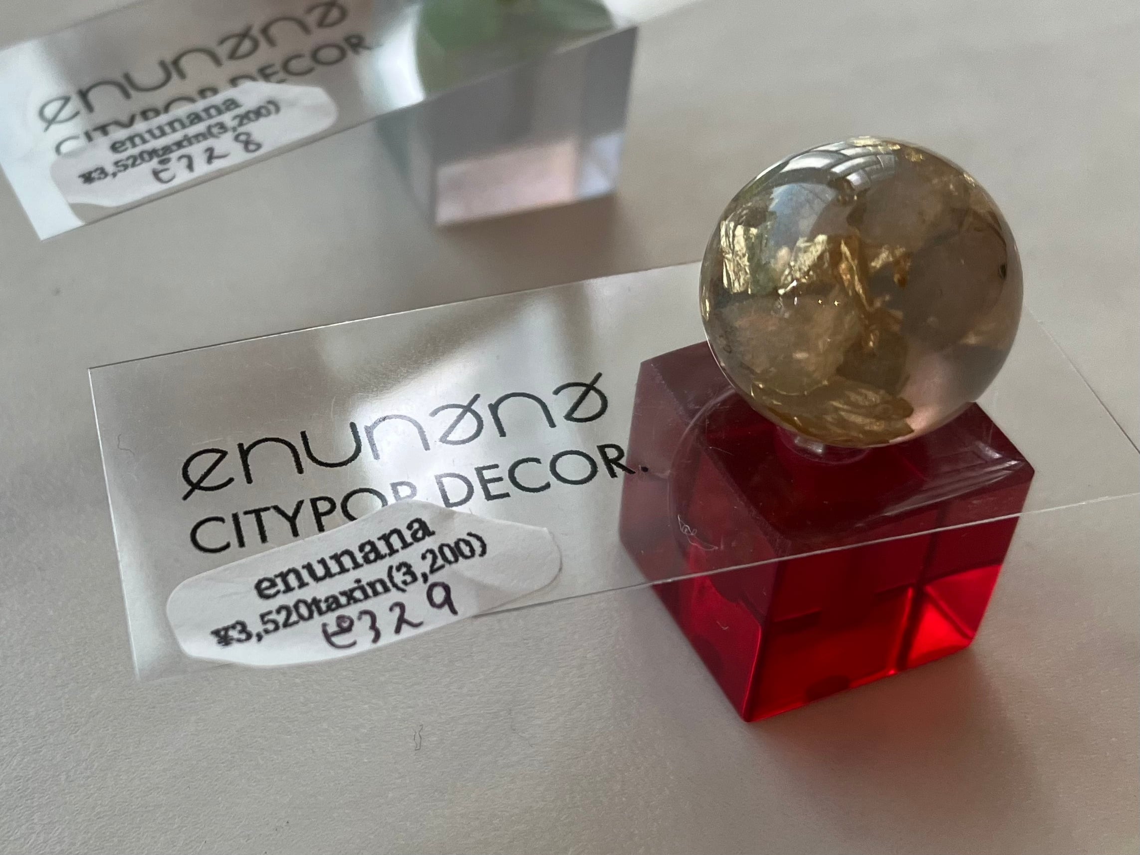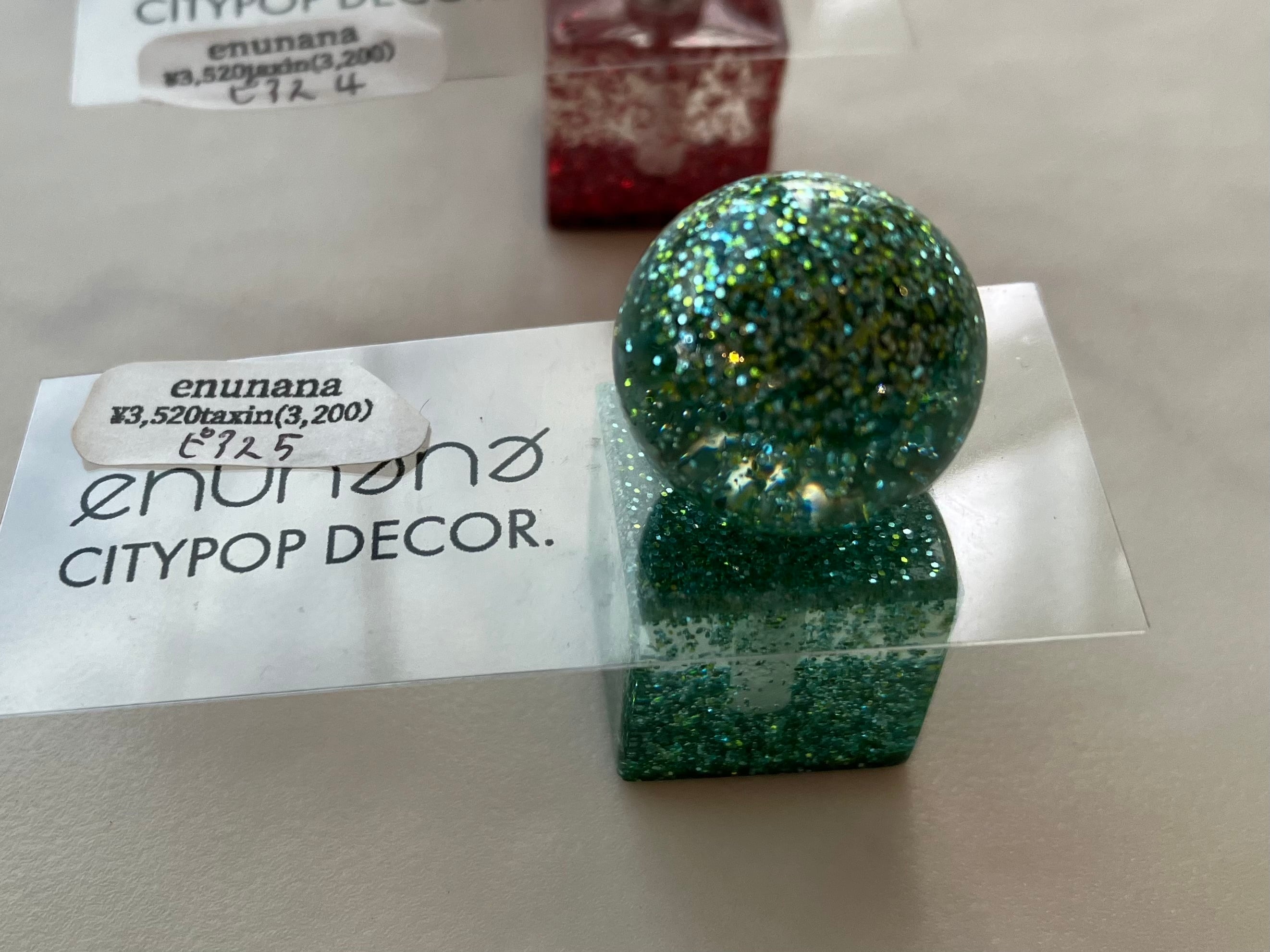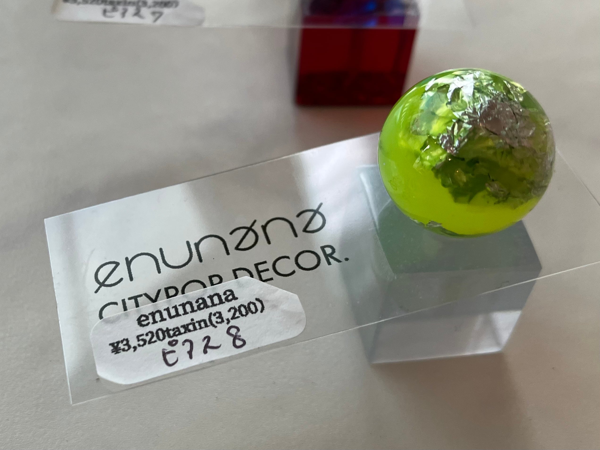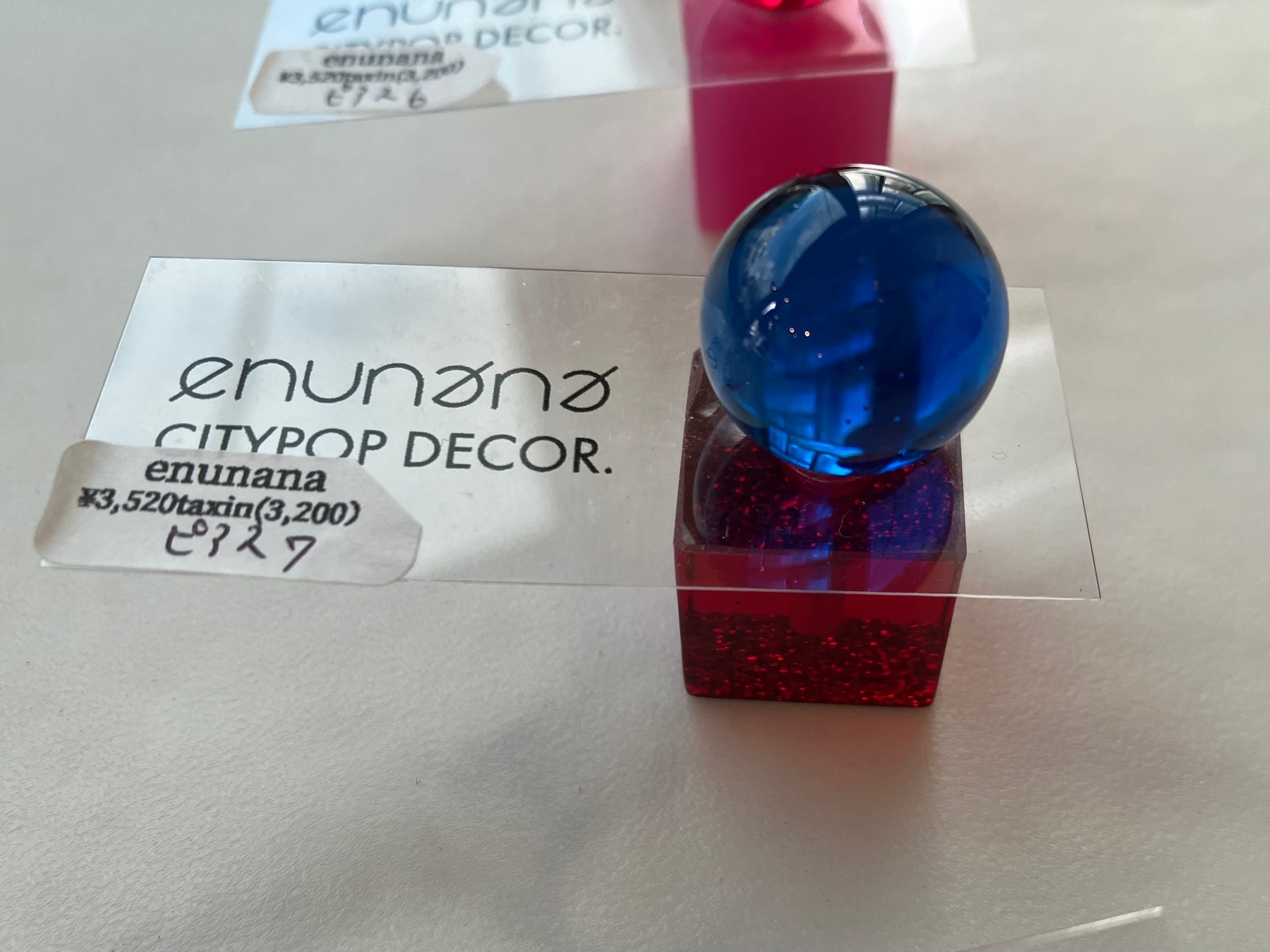 アクリルのキューブとボールが合体した、enunana定番ピアス
