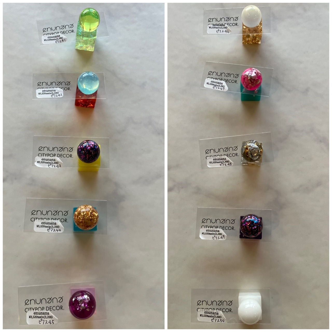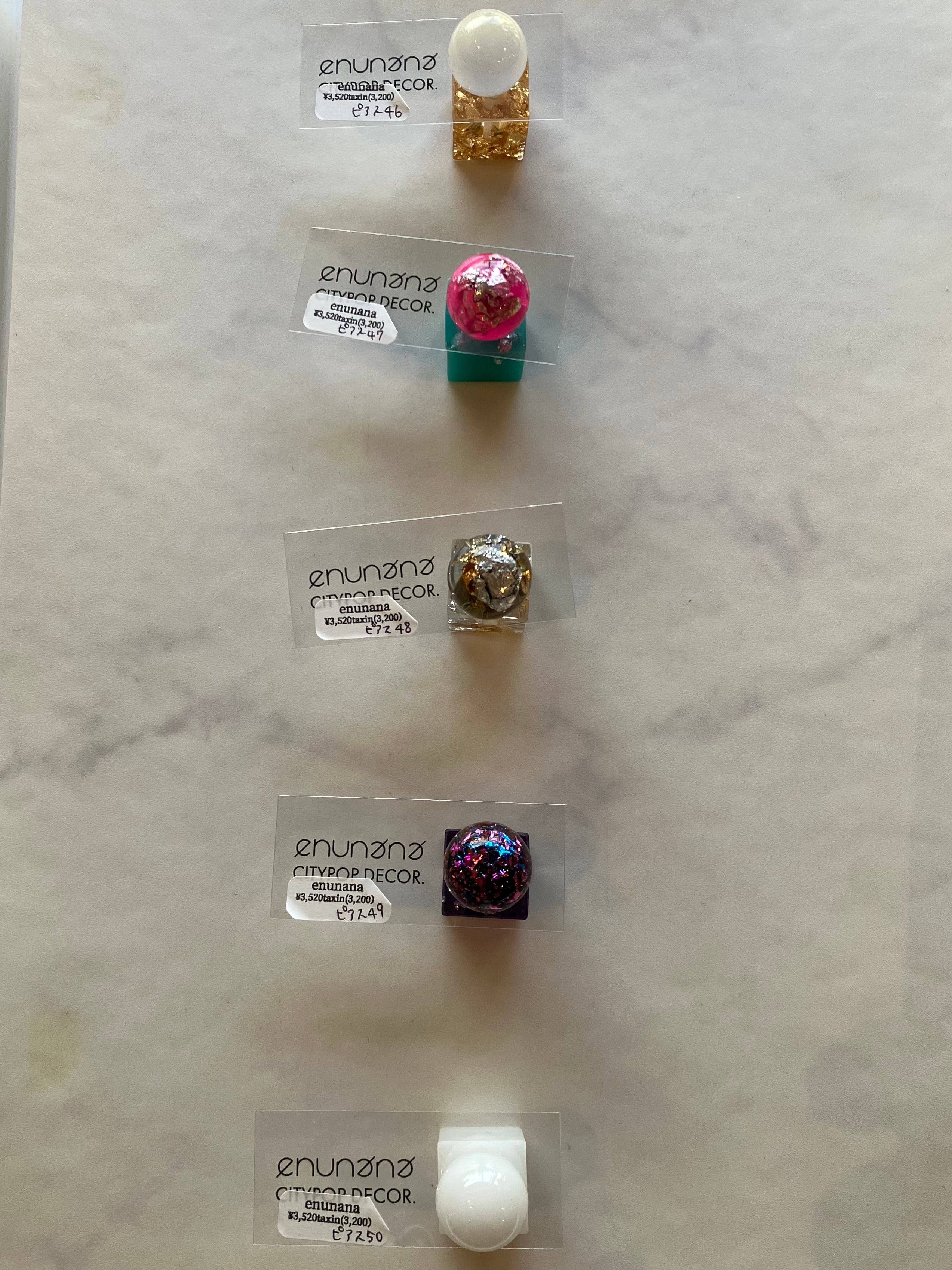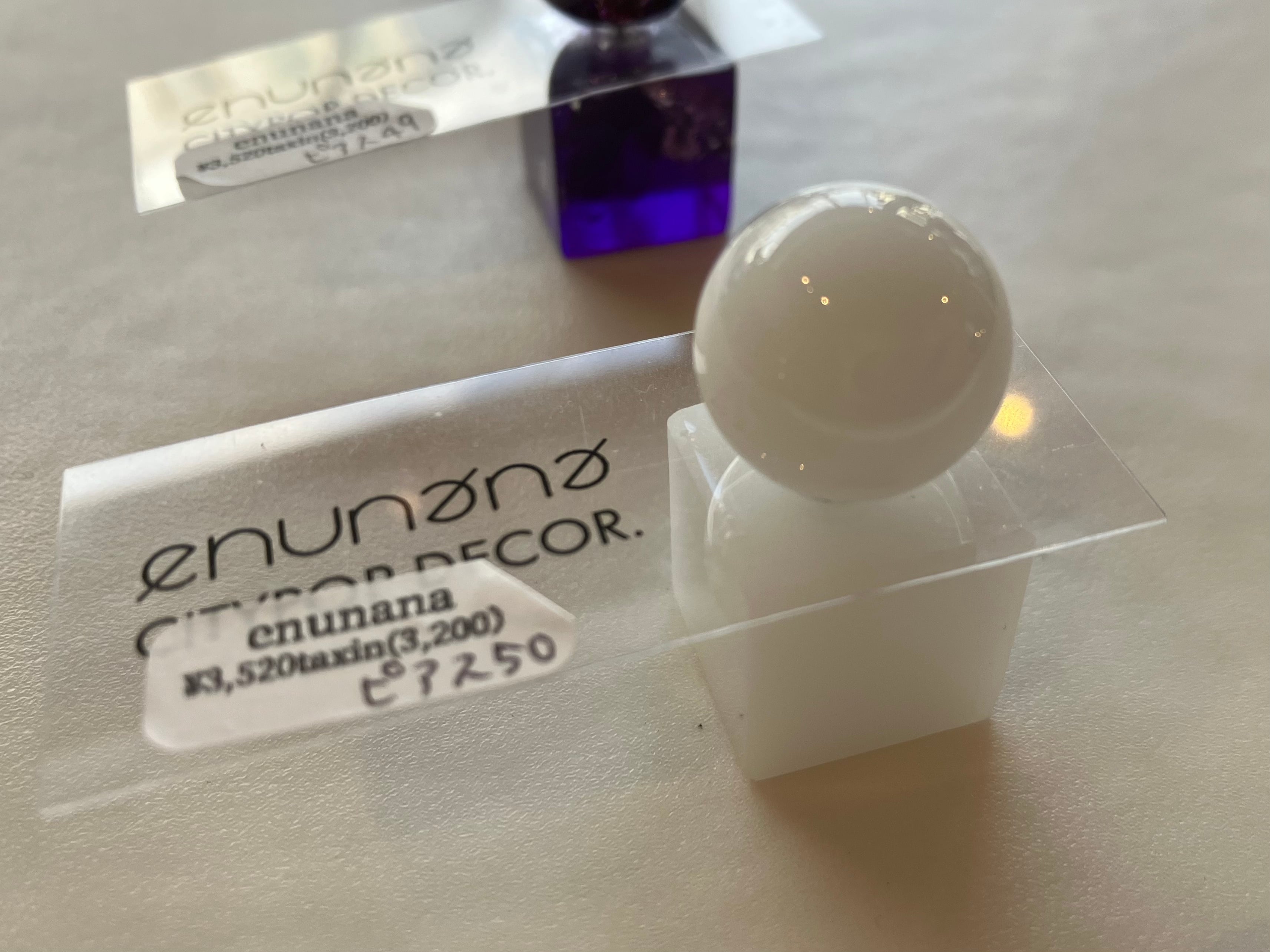 アクリルのキューブとボールが合体した、enunana定番ピアス