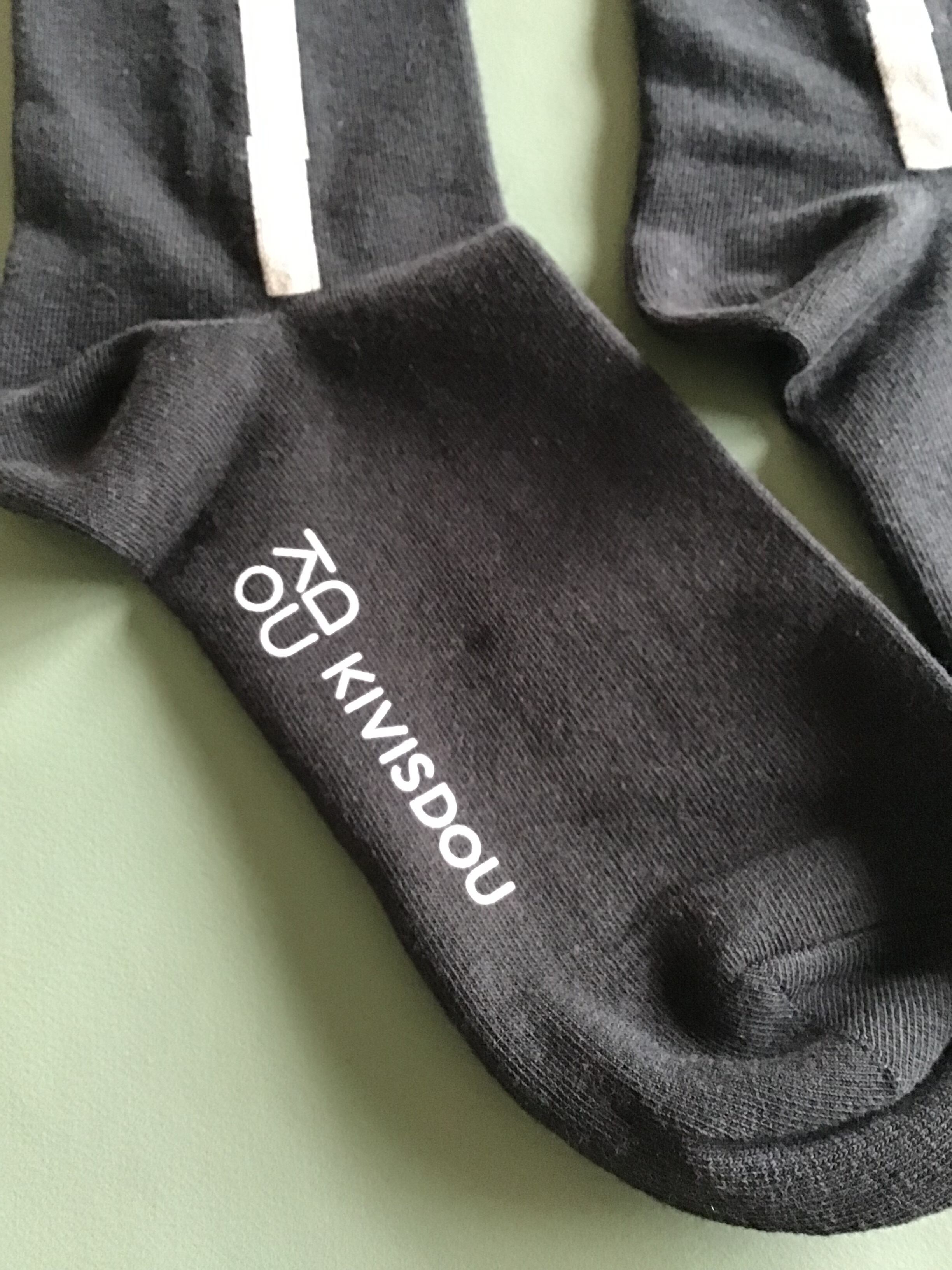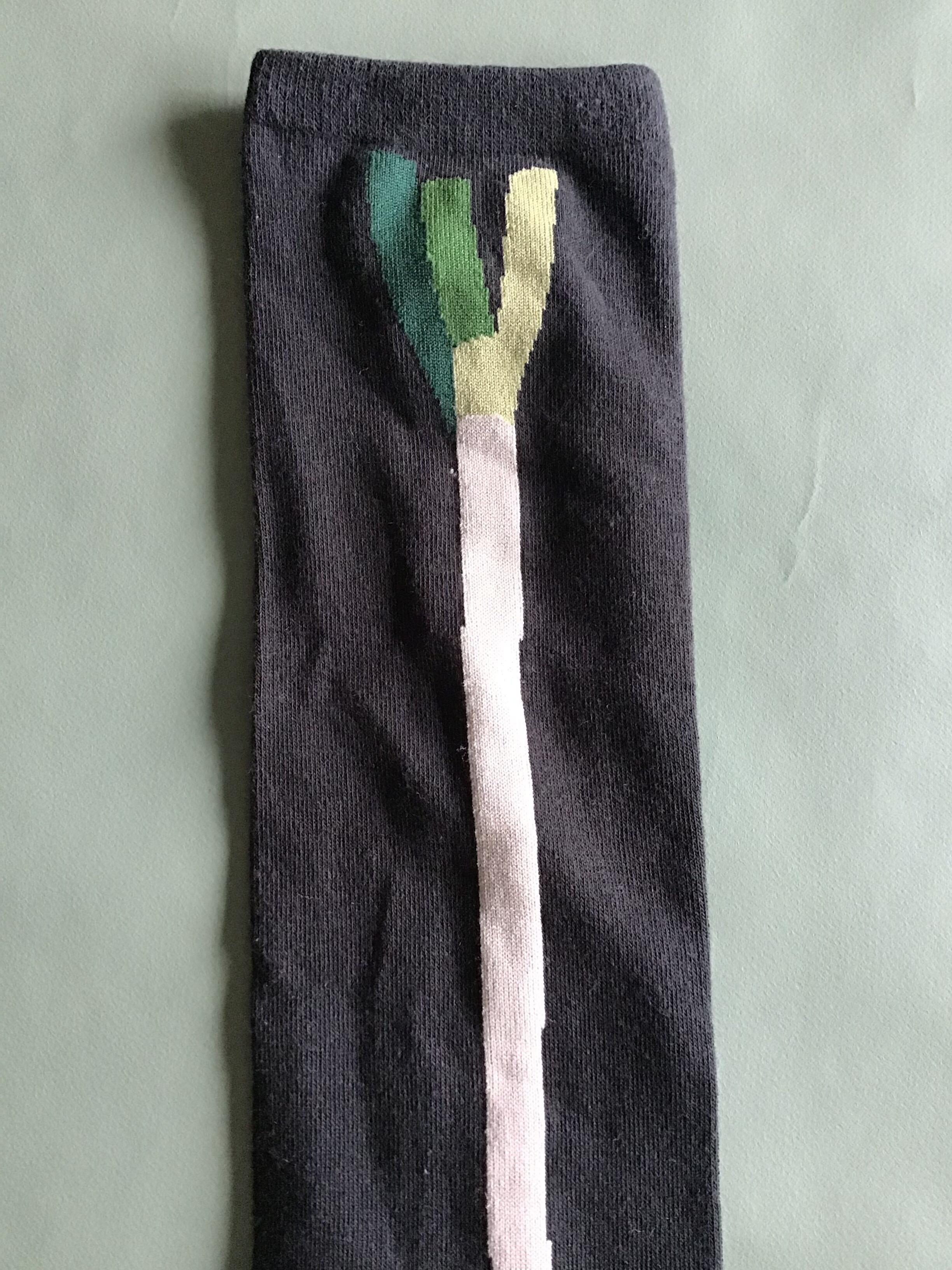 スカートからチラリと見えるラインは、一見「ただのライン入りソックス」でも裾を少し上げると…ネギとニンジンが出現!