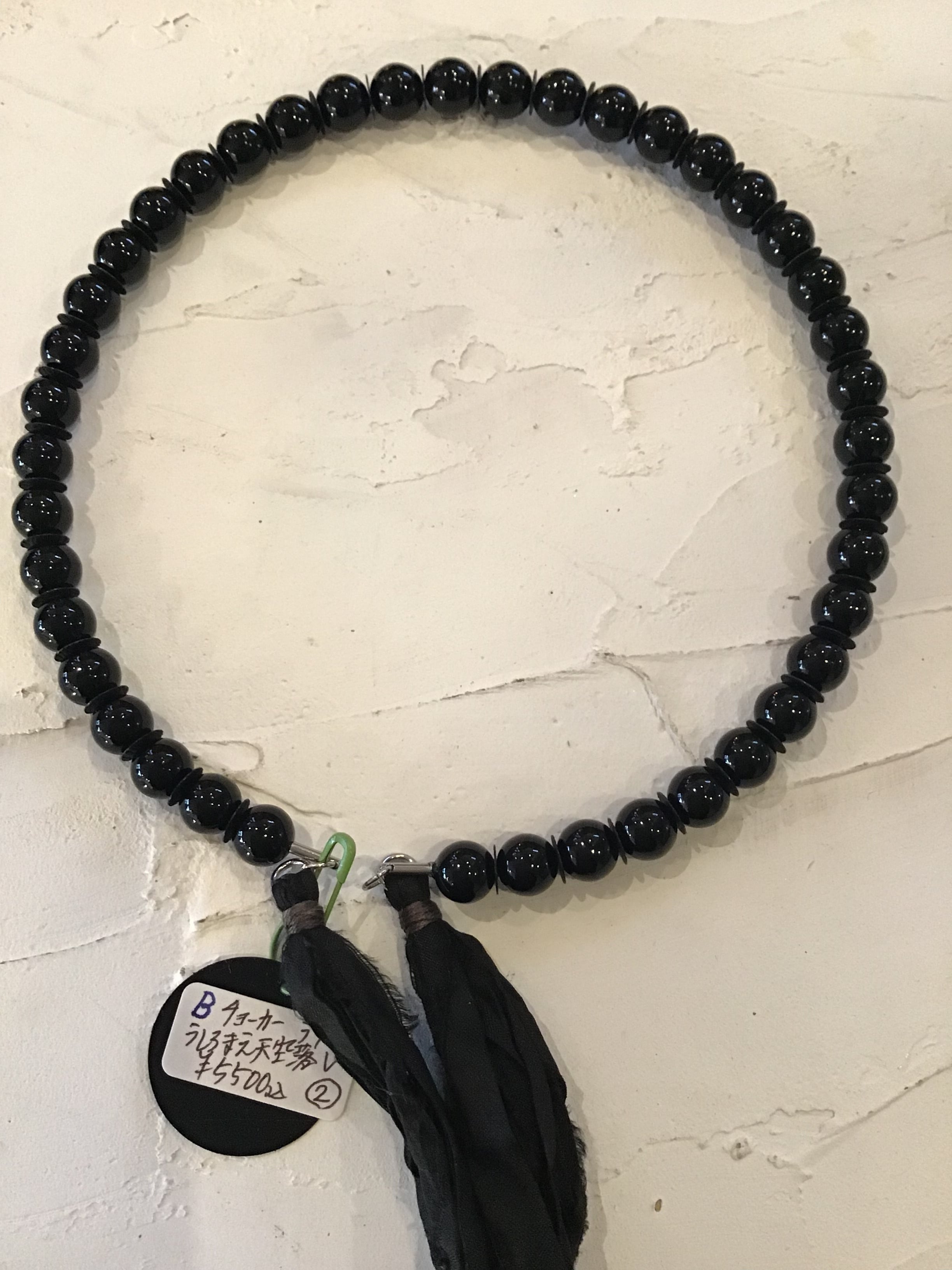 パールチョーカーになっがいシルクの「麺」のふさぶさが付きました。