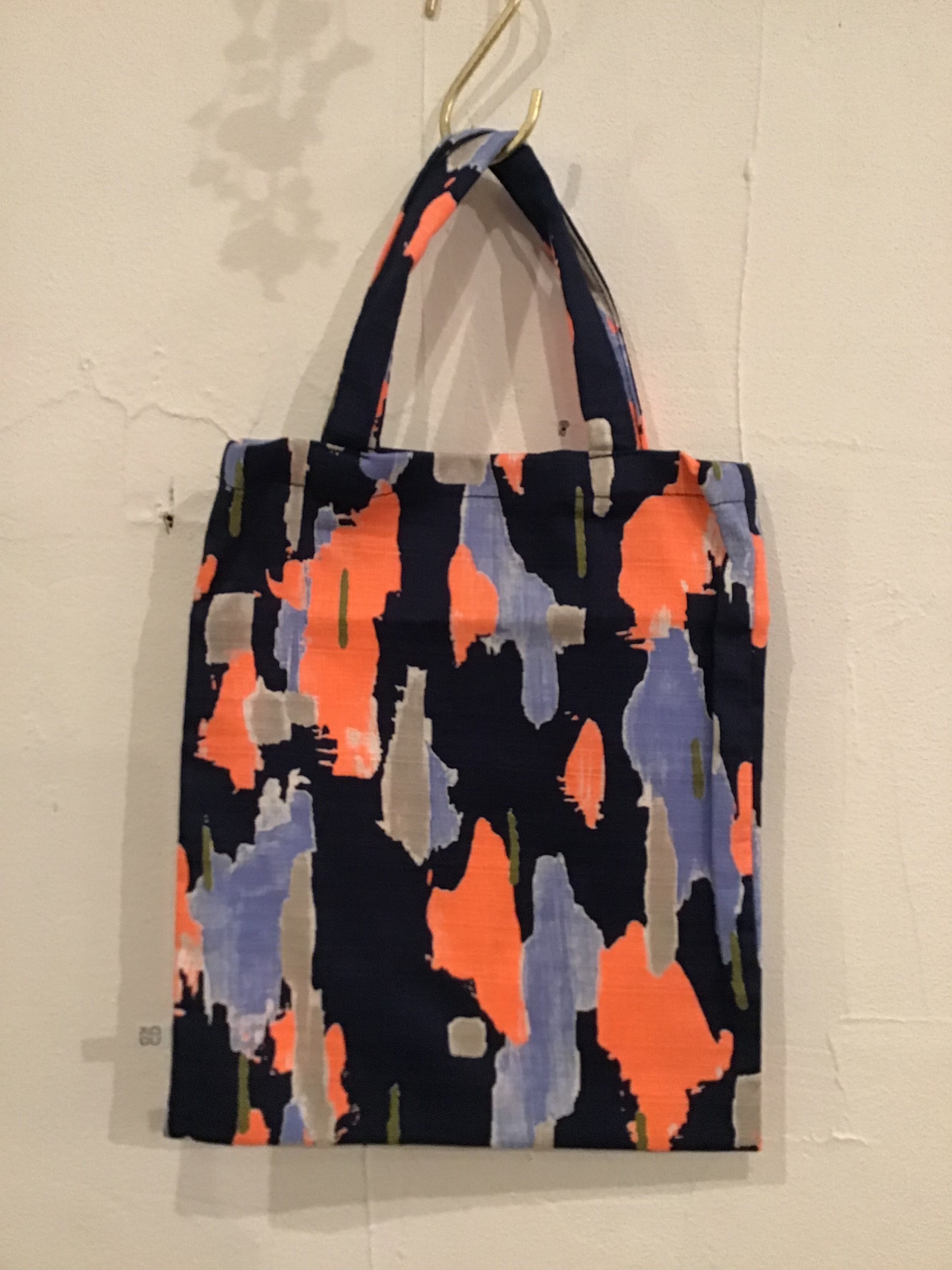 アートのような筆跡デザインが目を引く、カラフルで遊び心あふれるミニトートバッグ。