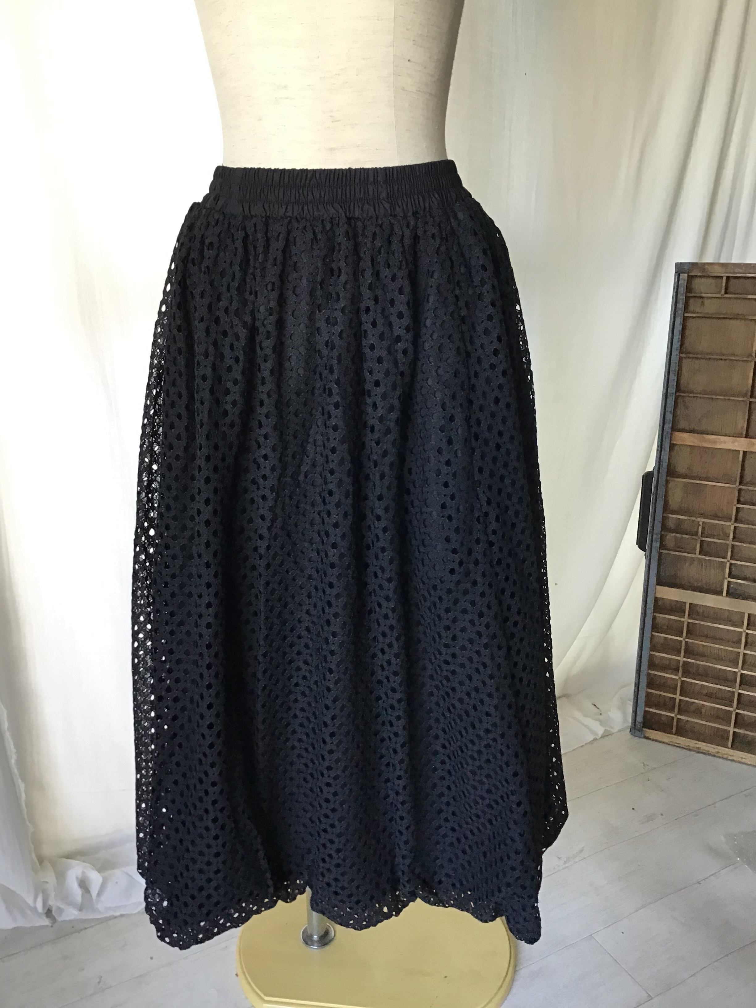 トレンドのバルーンシルエットが立体的な、透かし編みレースのスカートです。