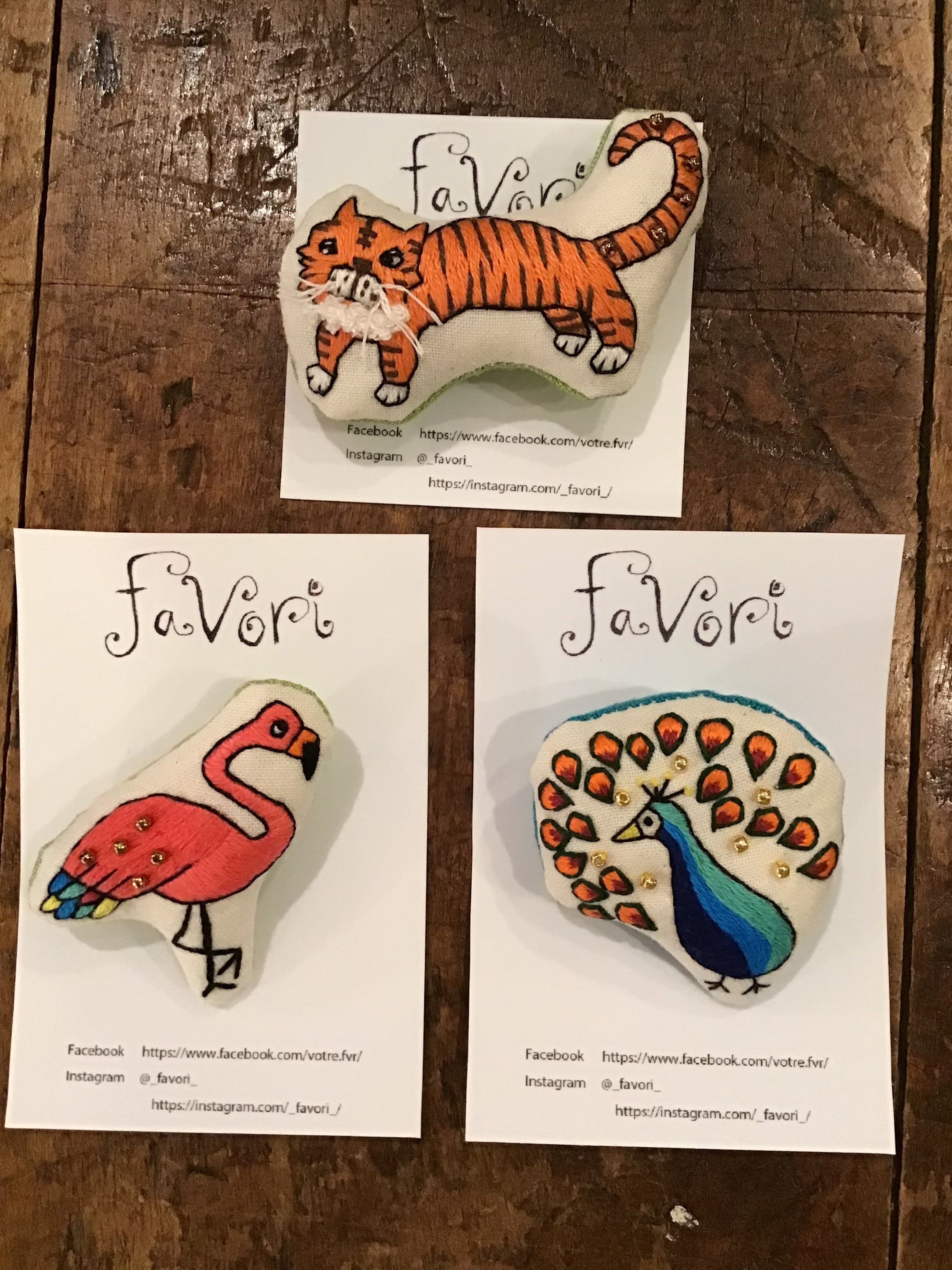バッグやポーチにさり気なく付けたり、シンプルなニットにも◎