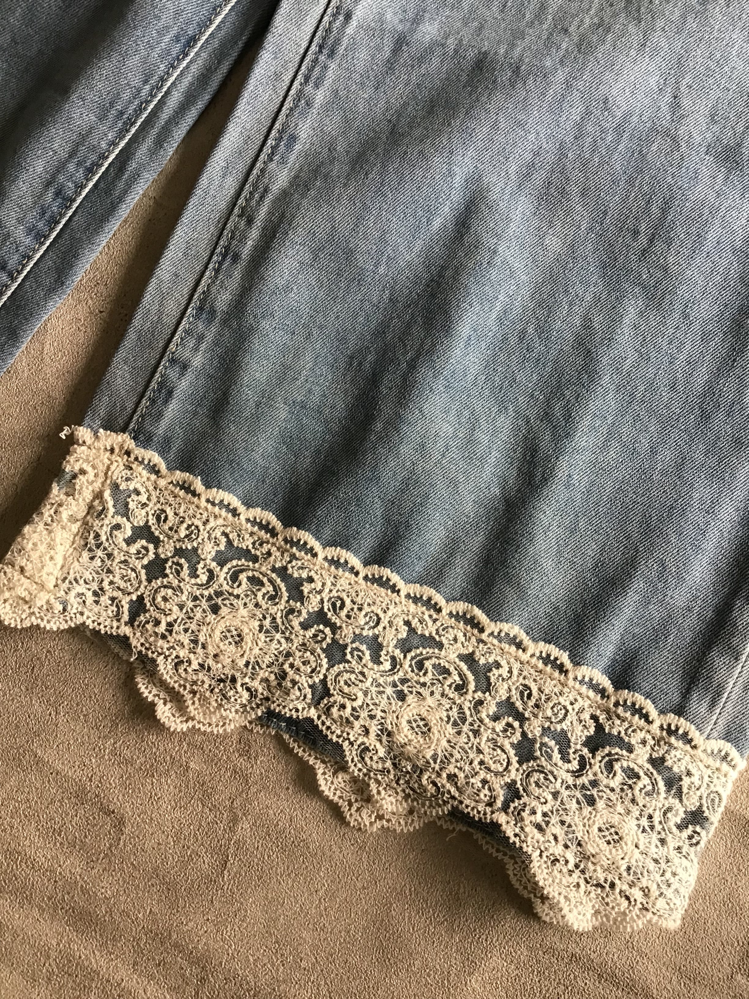 裾に施されたアンティークな雰囲気のレースがレディライクなデニムパンツ☆