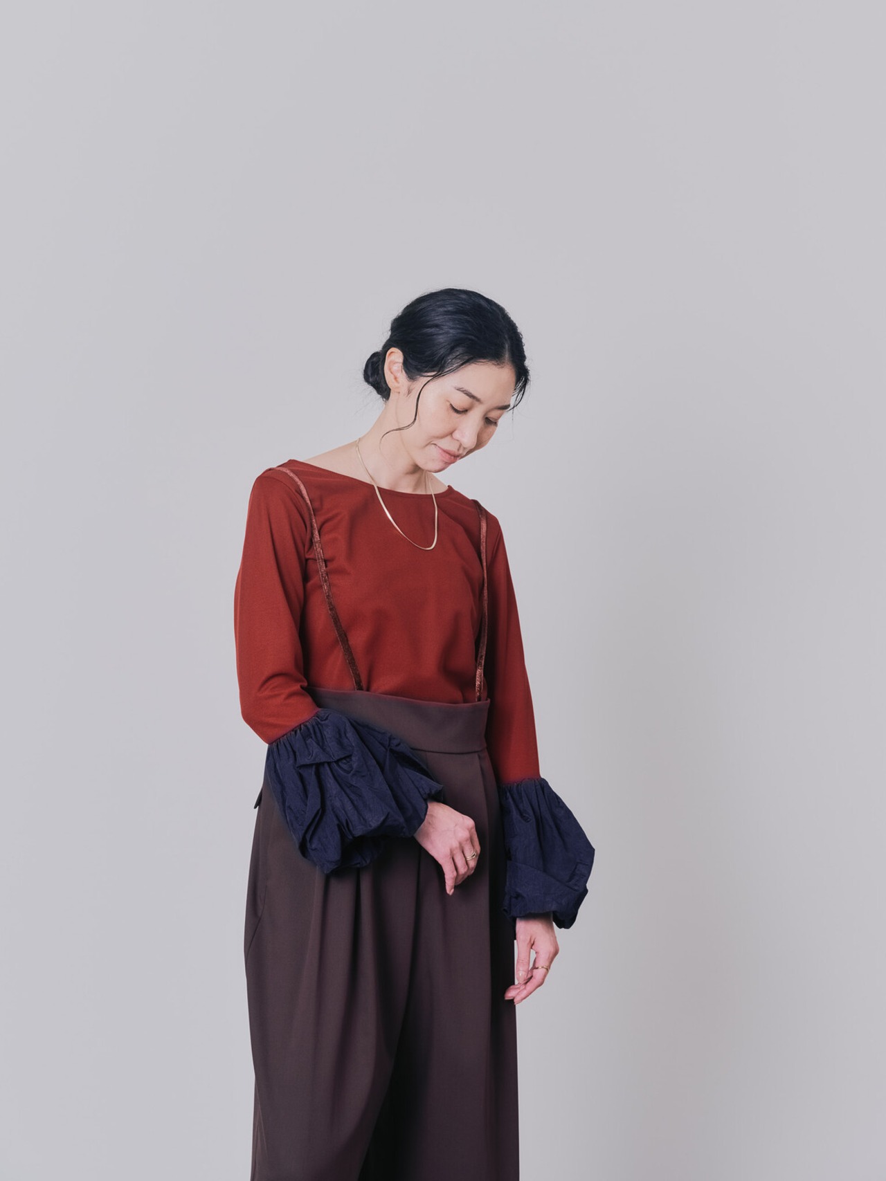 袖に特徴のあるデザイン。一枚でももちろん、羽織物とレイヤードしていただいても◎