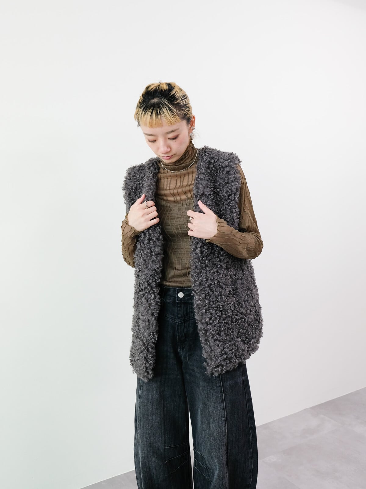 ふわふわもこもこな毛足が軽くてあたたかいフェイクファーベスト