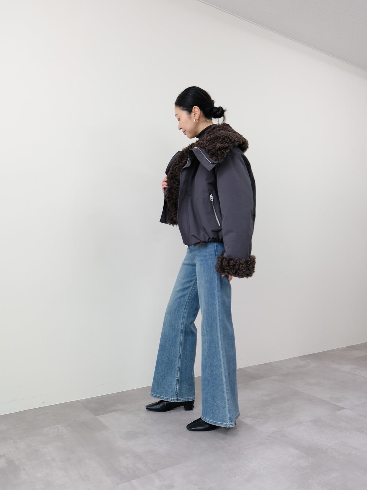 マットな質感とボリュームボアのコントラストが際立つショートブルゾン