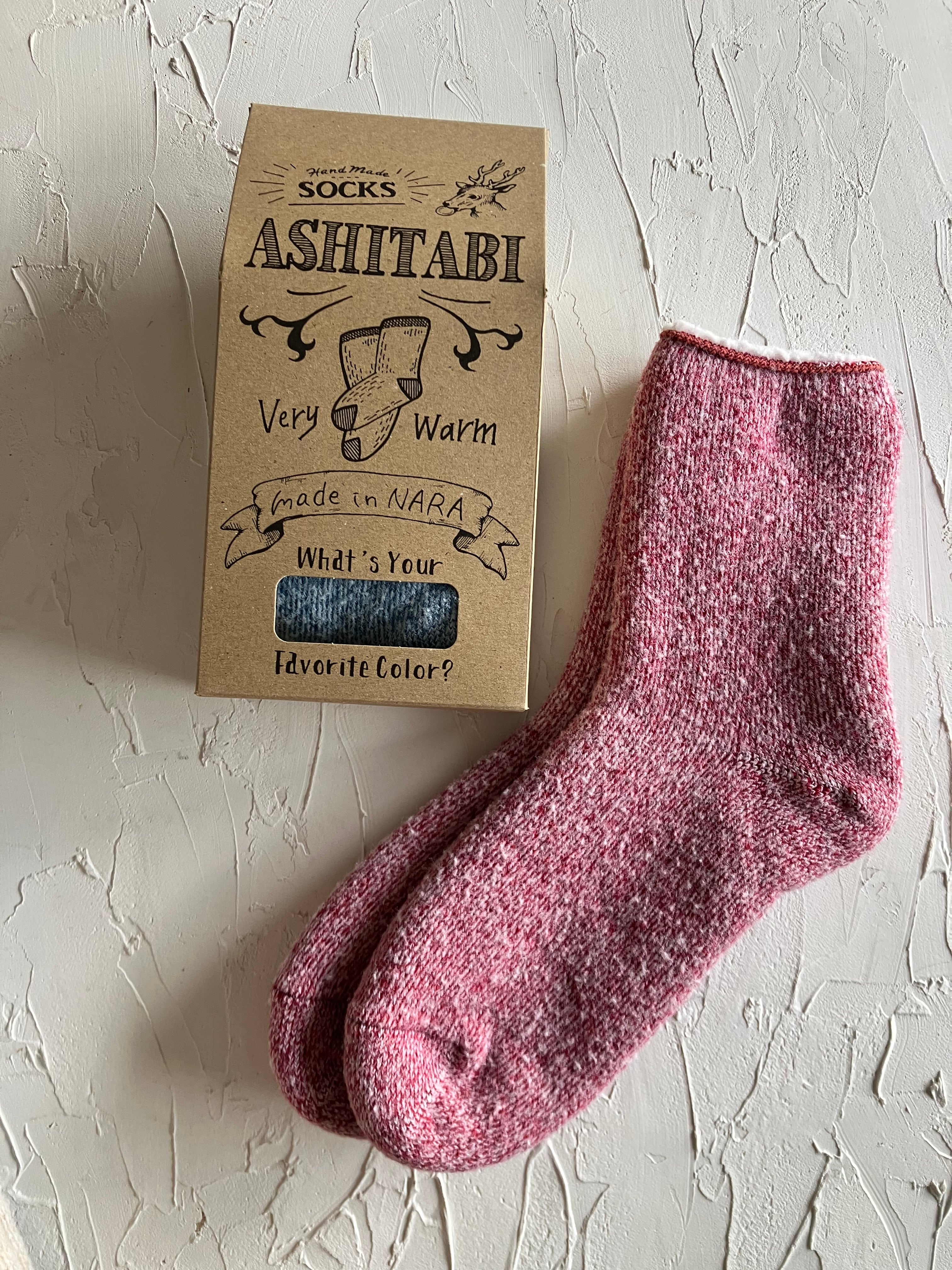 和紙ソックスでお馴染みのアシタビより、ウール100%のあったかソックス。