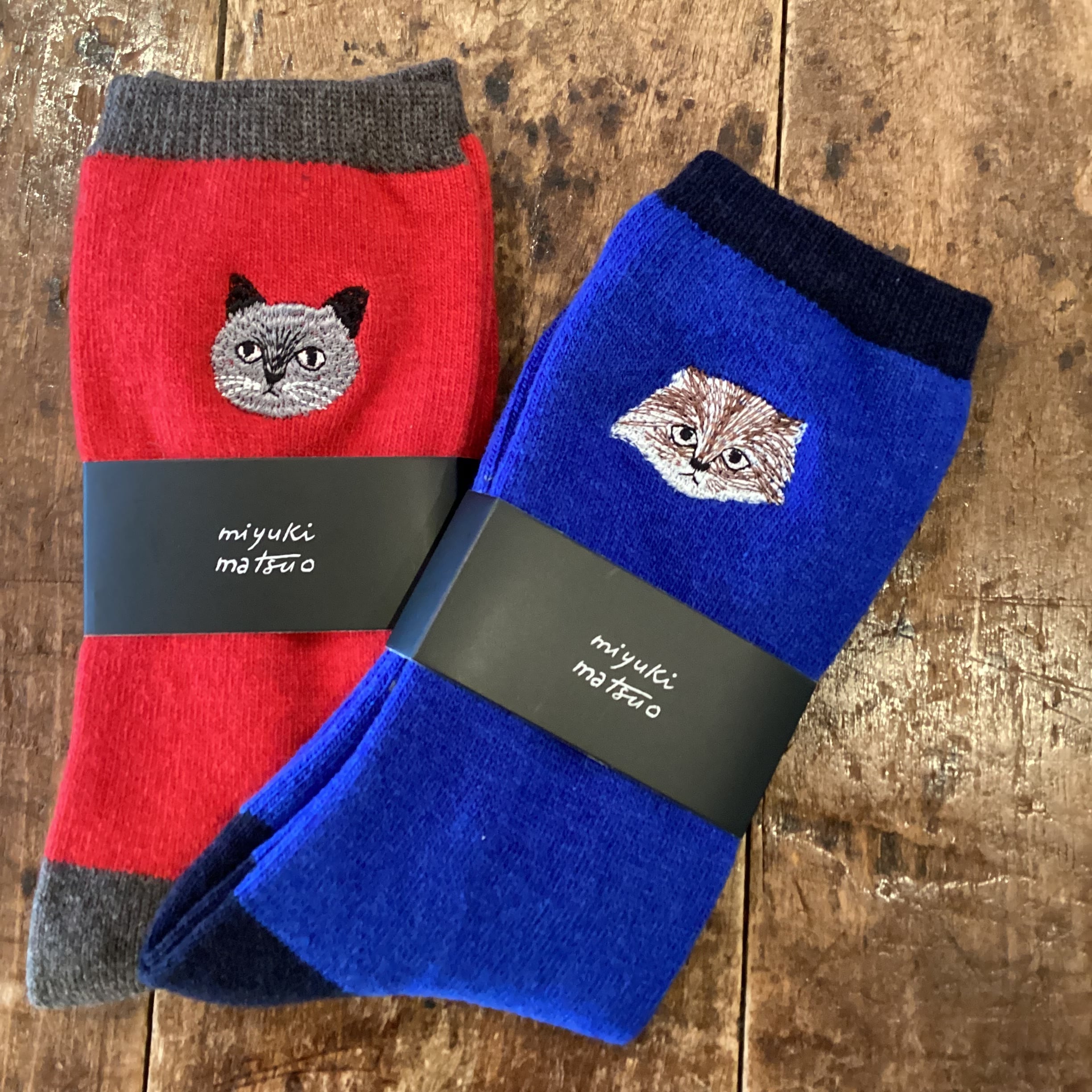 松尾ミユキさんの描くネコの刺繍がポイントです。