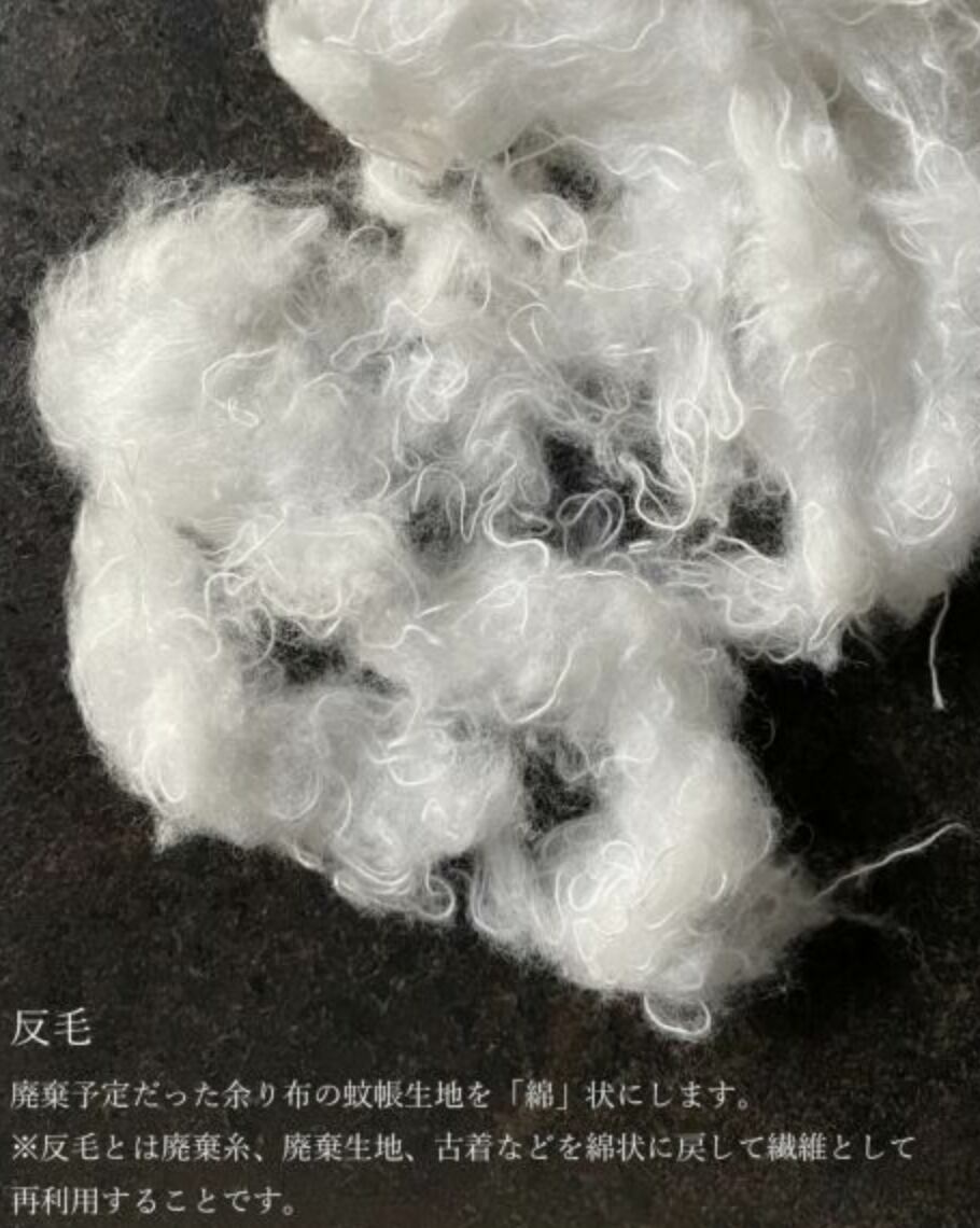 marrowは「蚊帳製品」の生産時に出来る裁断後の余り布や、着古された「かやの日常着」を原料の一部に使用しています。