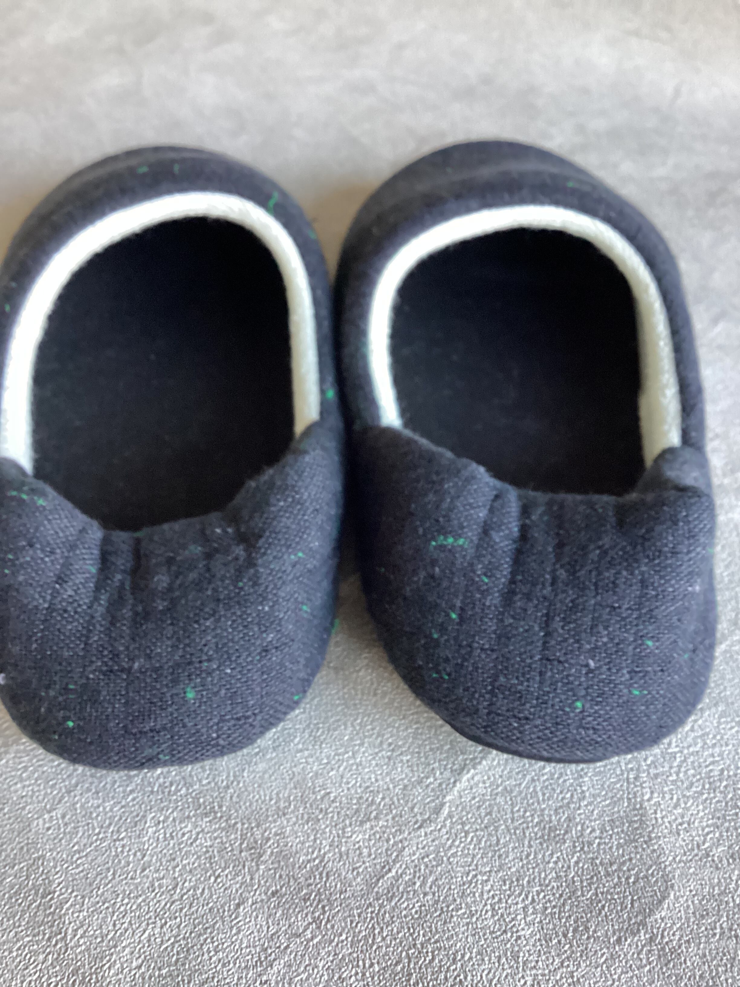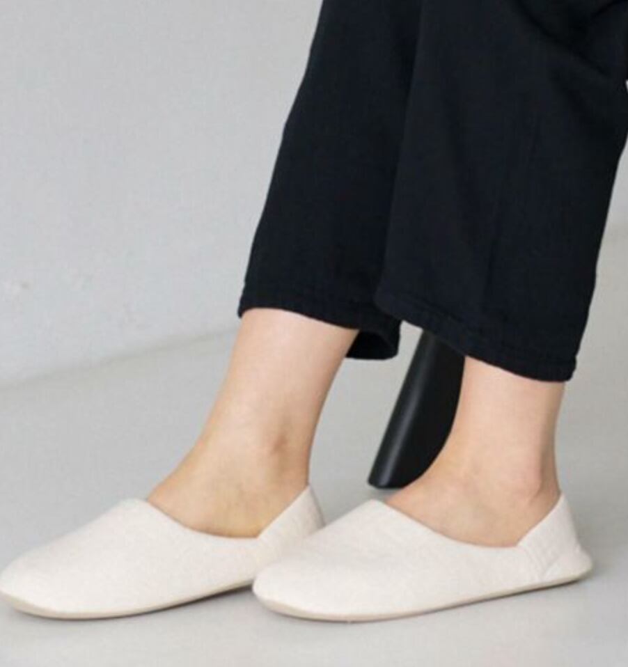 幡の蚊帳素材をアップサイクルしたオリジナルテキスタイル「marrow」のルームシューズ。