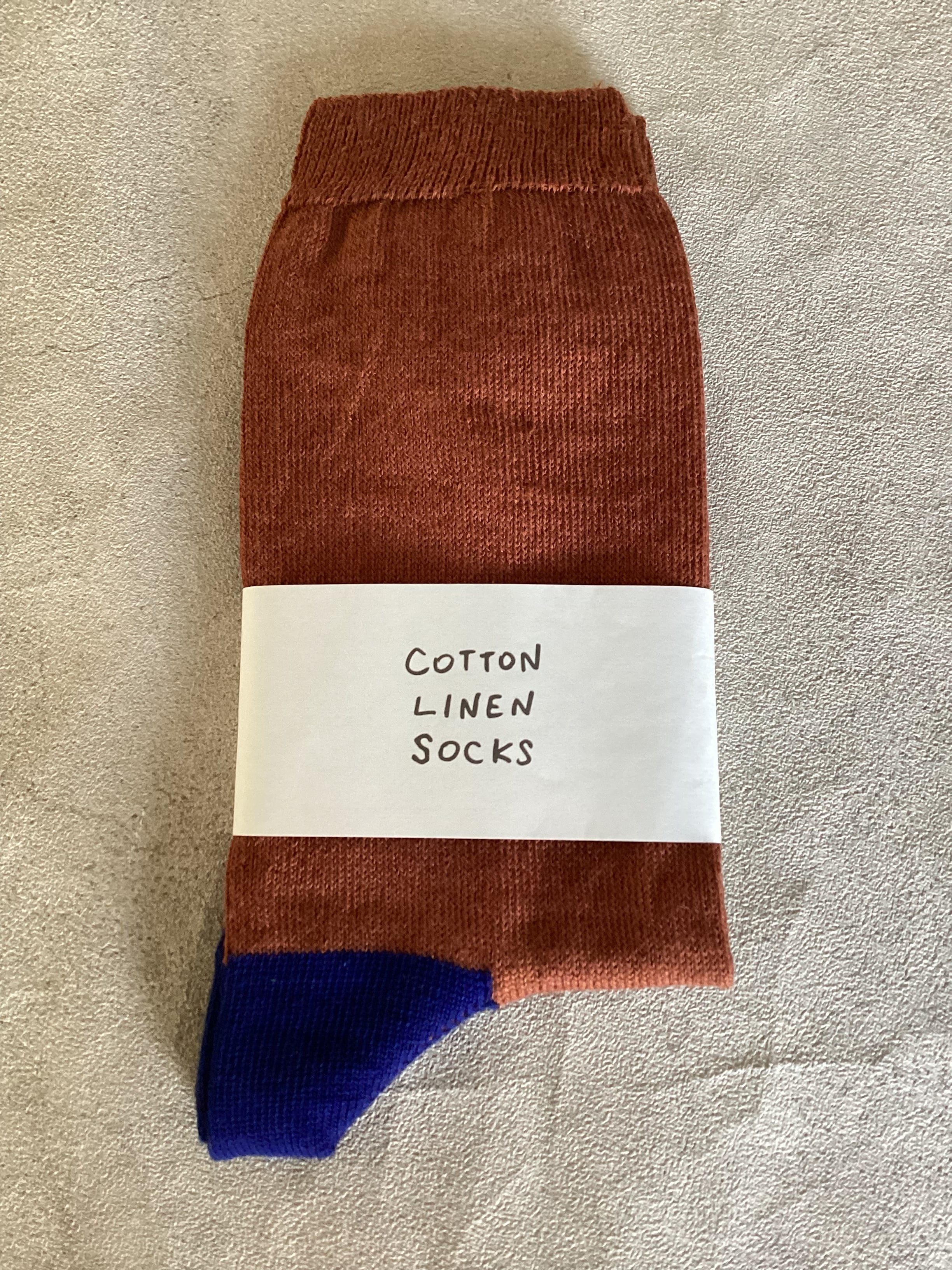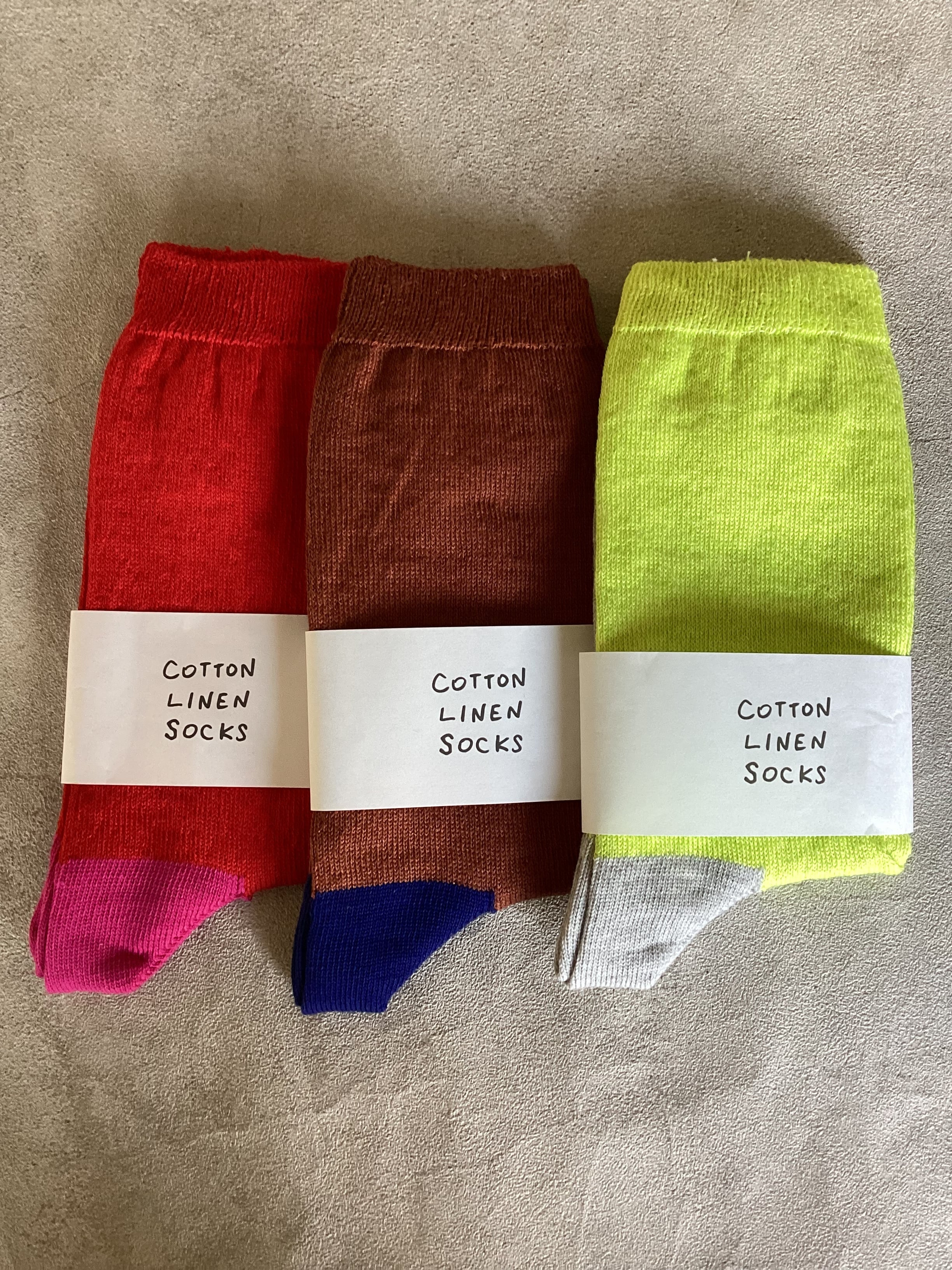 やわらかなコットンと清涼感のあるリネンを使用し、蒸れにくく快適な履き心地で足元を快適に保ちます。