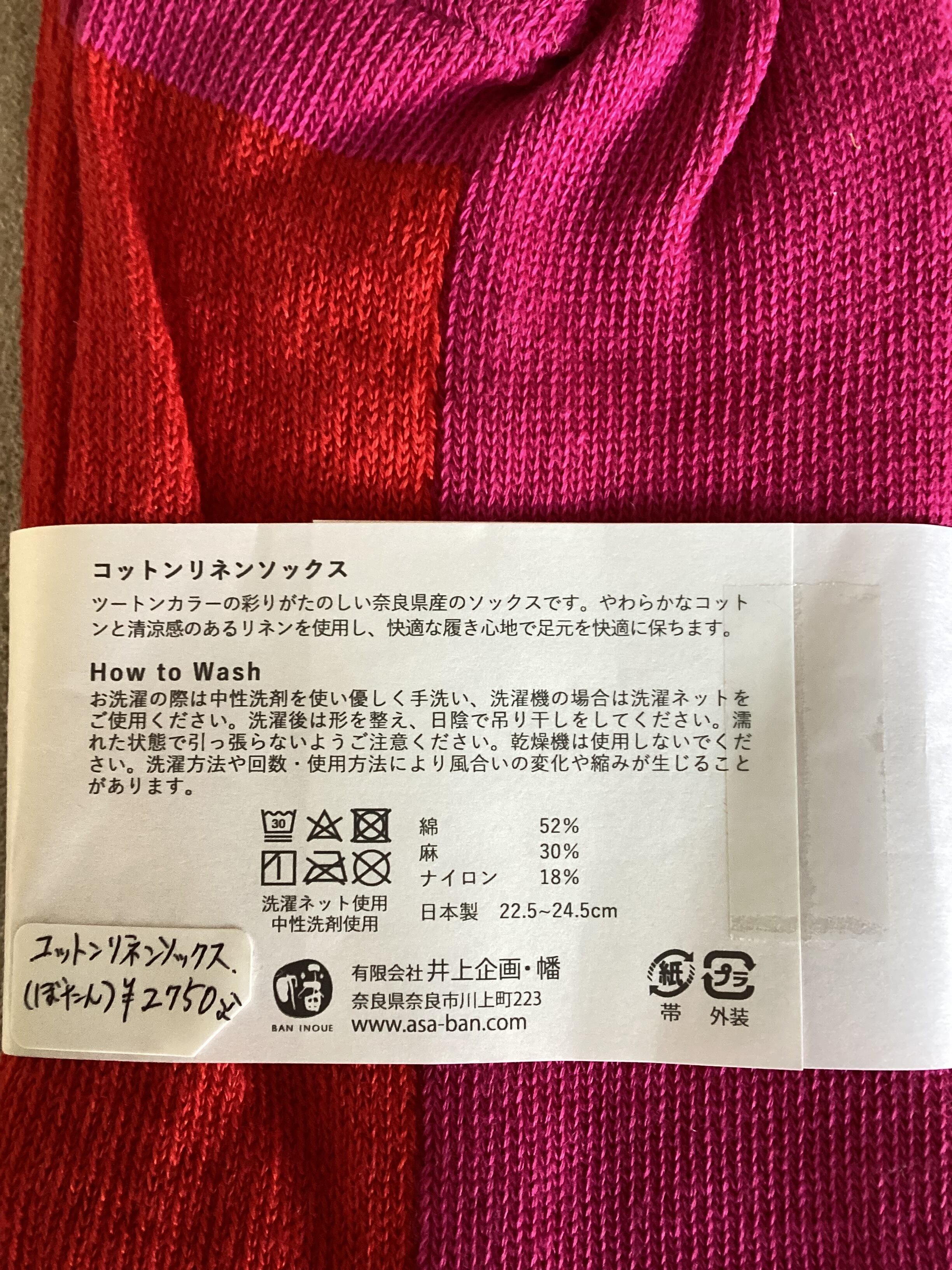 ツートンカラーの彩りが楽しい奈良県産の靴下です。