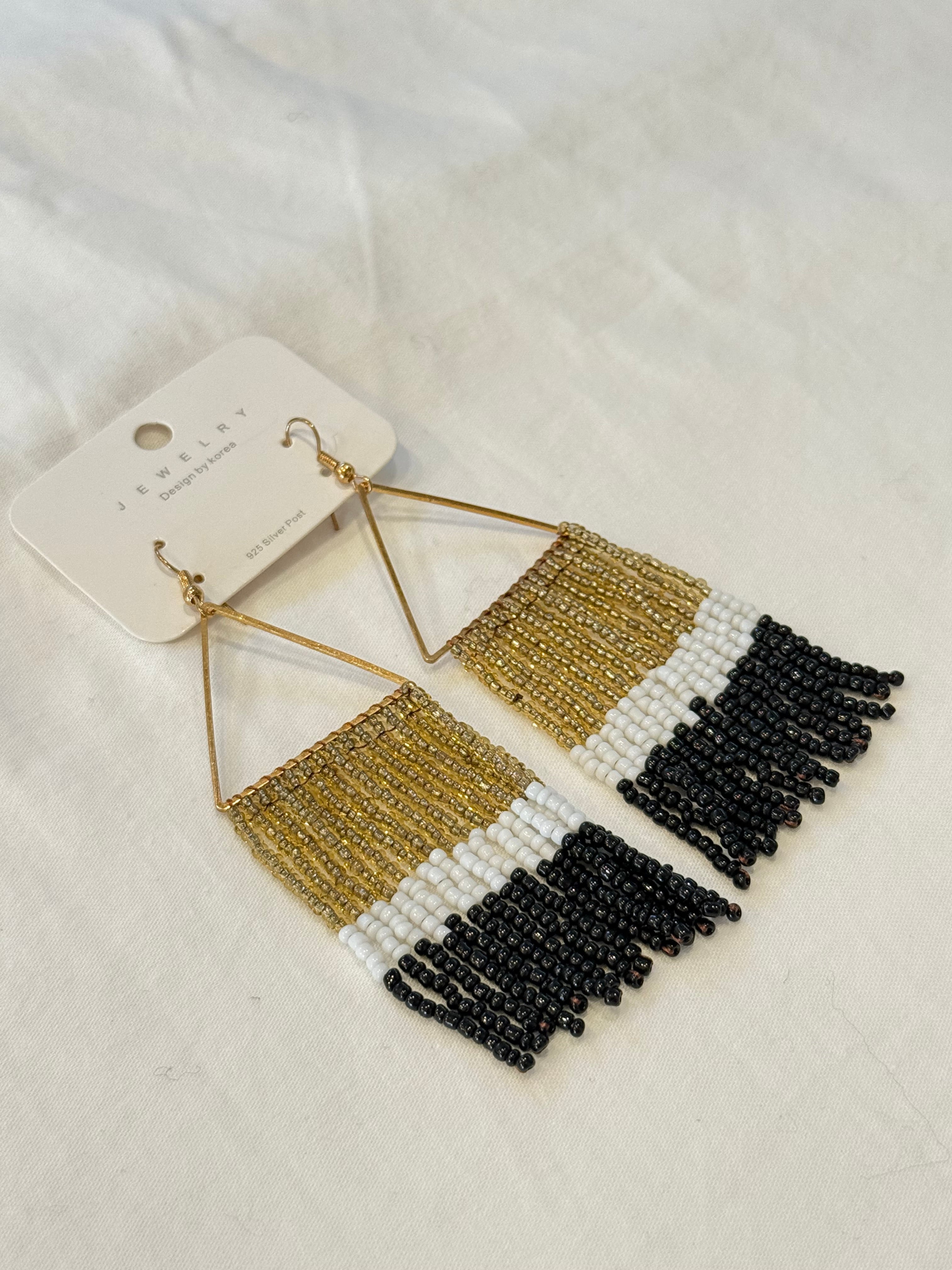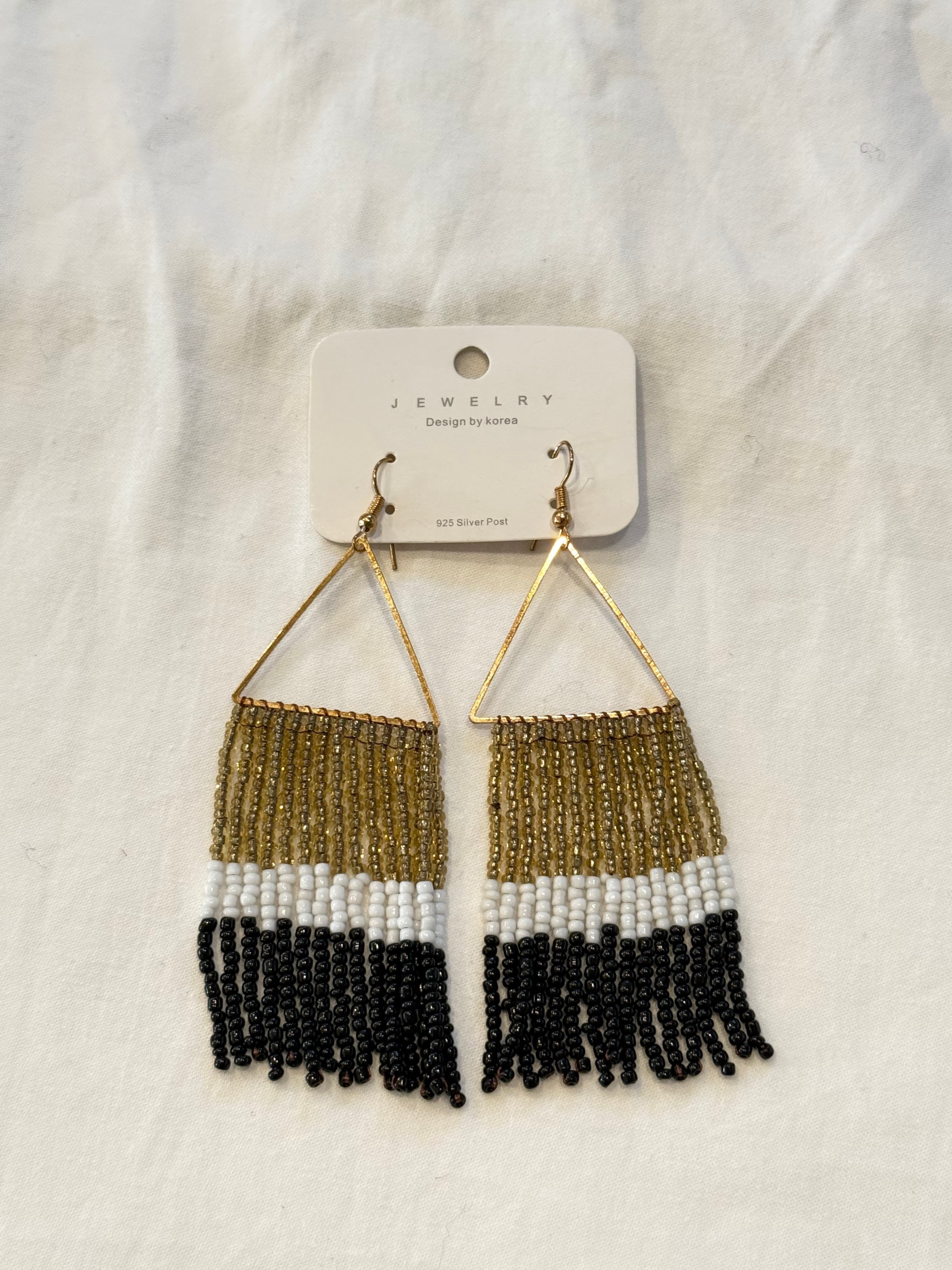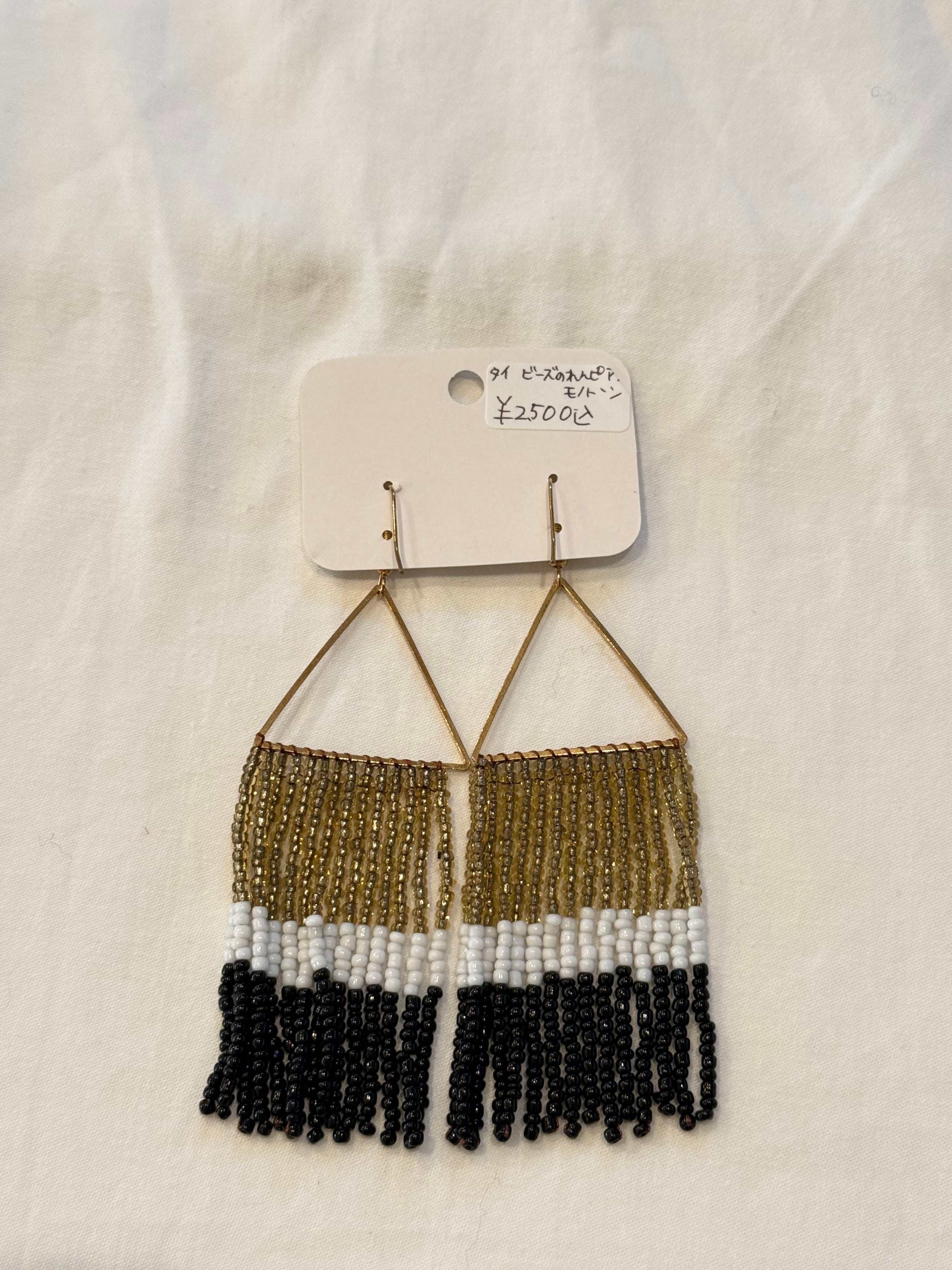 【タイ雑貨】ビーズのれんピアス モノトーン