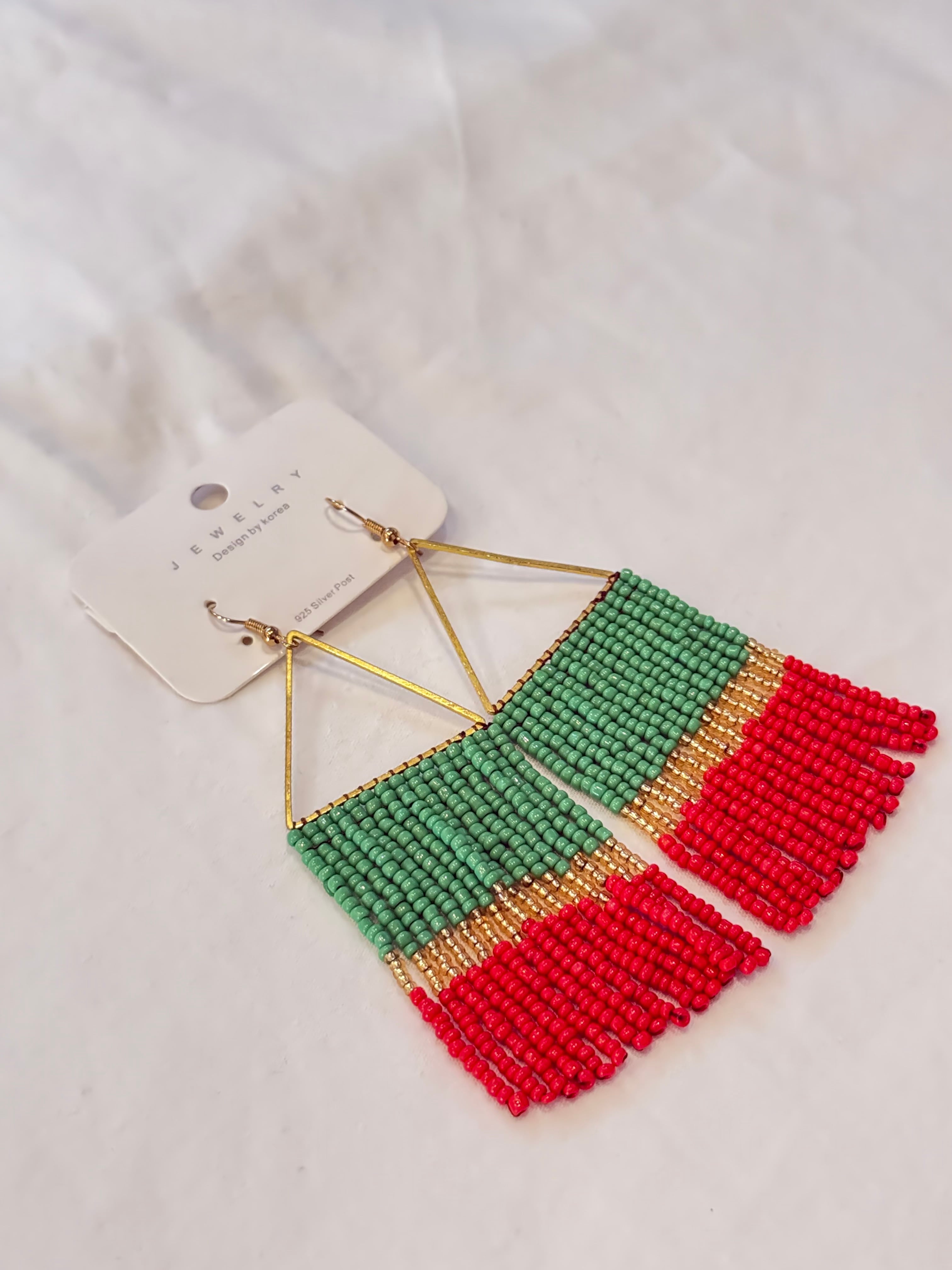 【タイ雑貨】ビーズのれんピアス カラフル