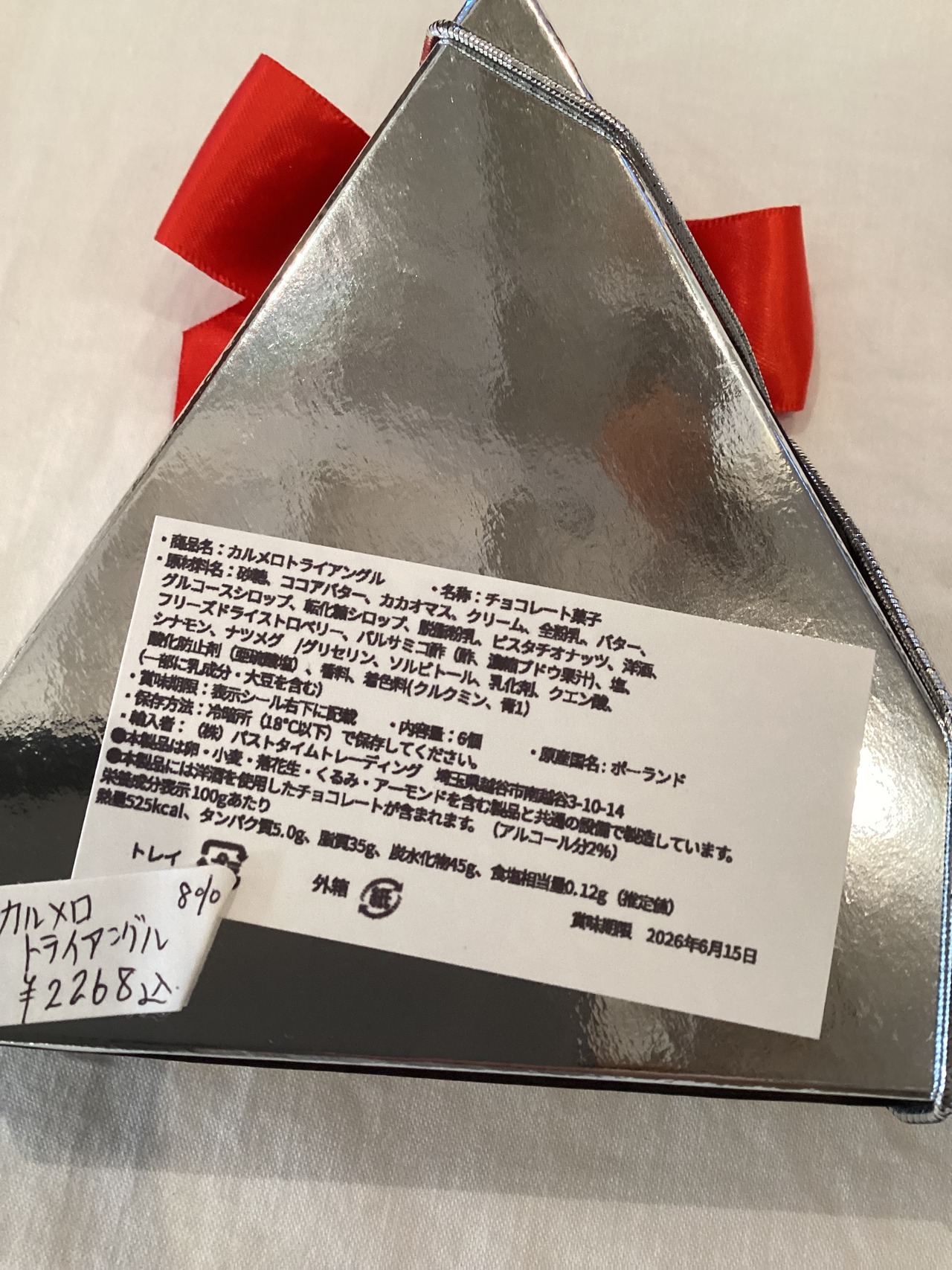 原材料名:砂糖、ココアバター、カカオマス、クリーム、全粉乳、バター 、グルコースシロップ、