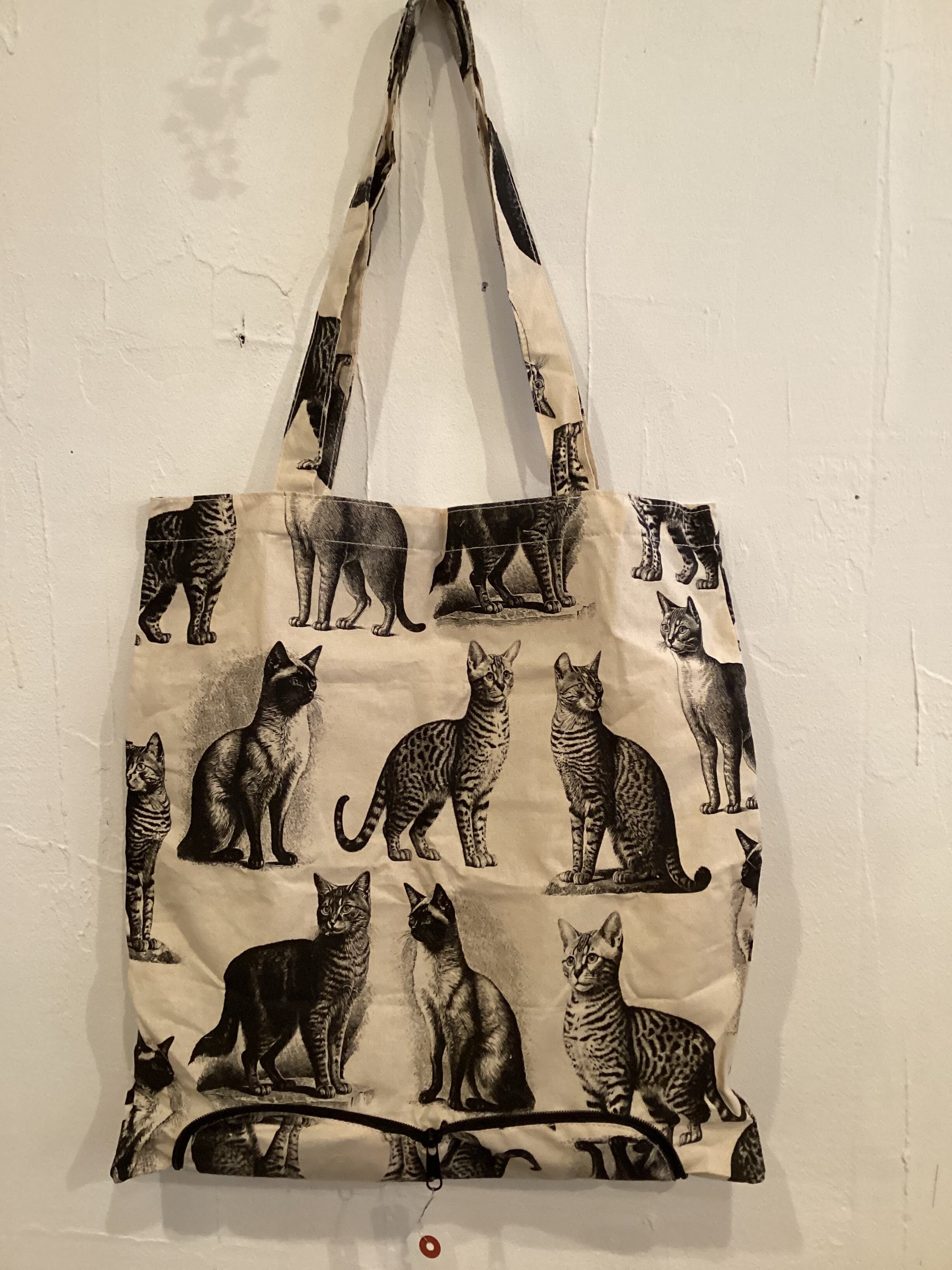 個性的なモノクロプリントがオシャレなコットン製のエコバッグ。