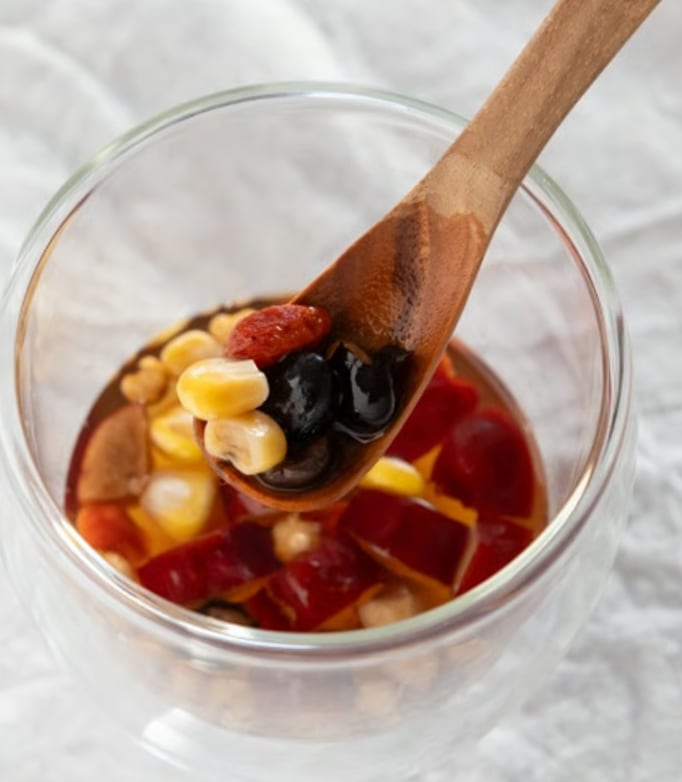 一般的なチャイによく使用されるスパイスは、実は漢方でも生薬として古くから利用されてきたものばかりです。そこへ更に薬効の高い八角や甘草、たんぽぽの根を加え薬膳らしいチャイブレンドとなりました。寒い季節に、じんわり体を温め、胃腸の働きのサポートにも効果的です。また、殺菌作用や喉のケアにも。