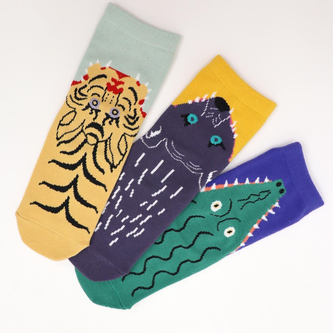 ワニさん、くまさん、トラさんの3足セット。