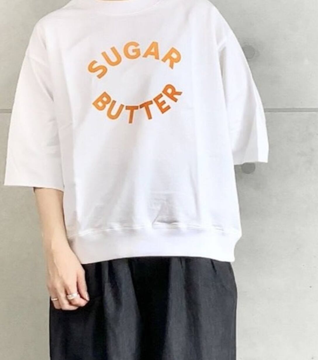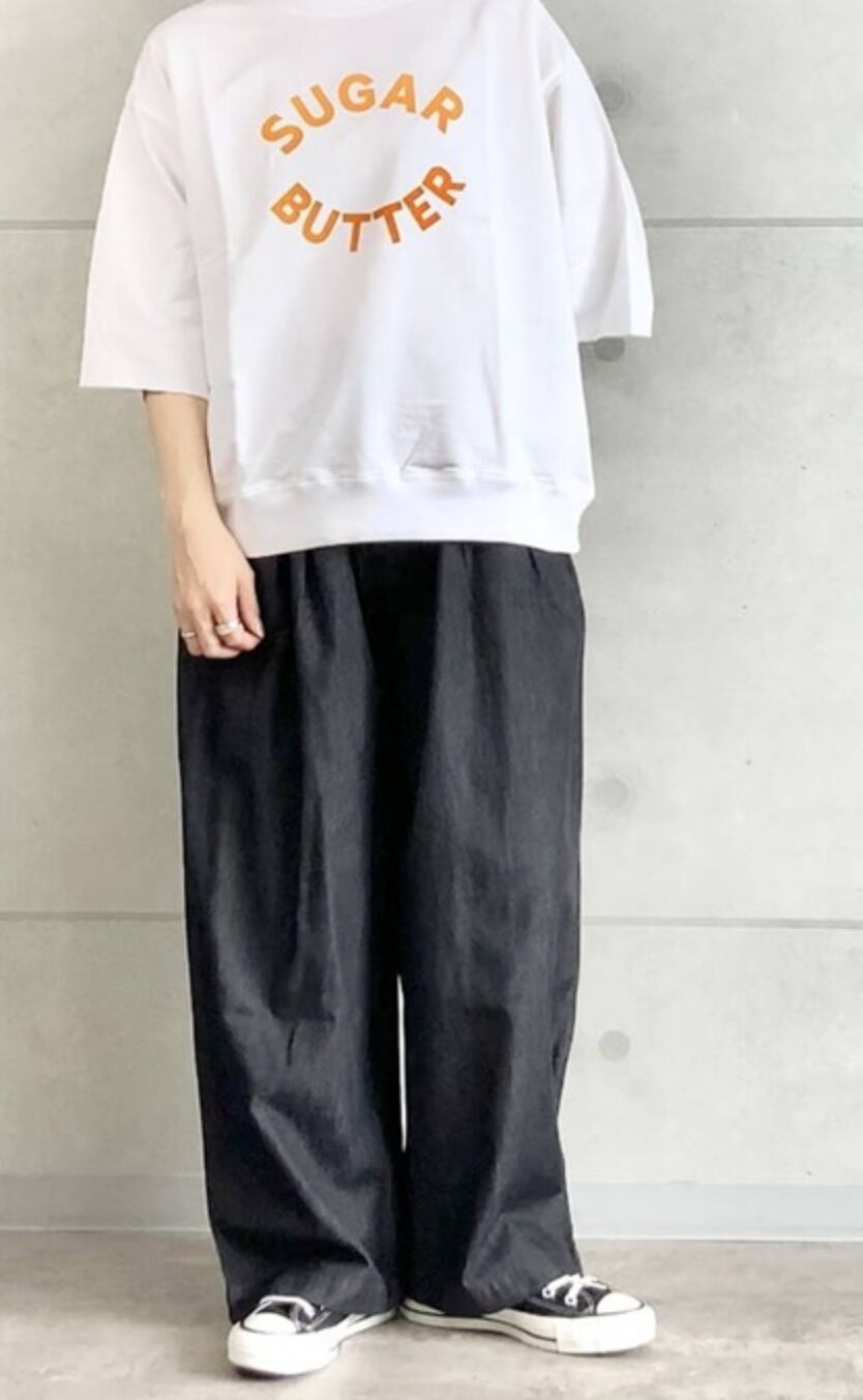 シンプルなロゴプリントとゆるすぎないシルエットでだらしなくならず、どんなボトムとも合わせやすいアイテムです。