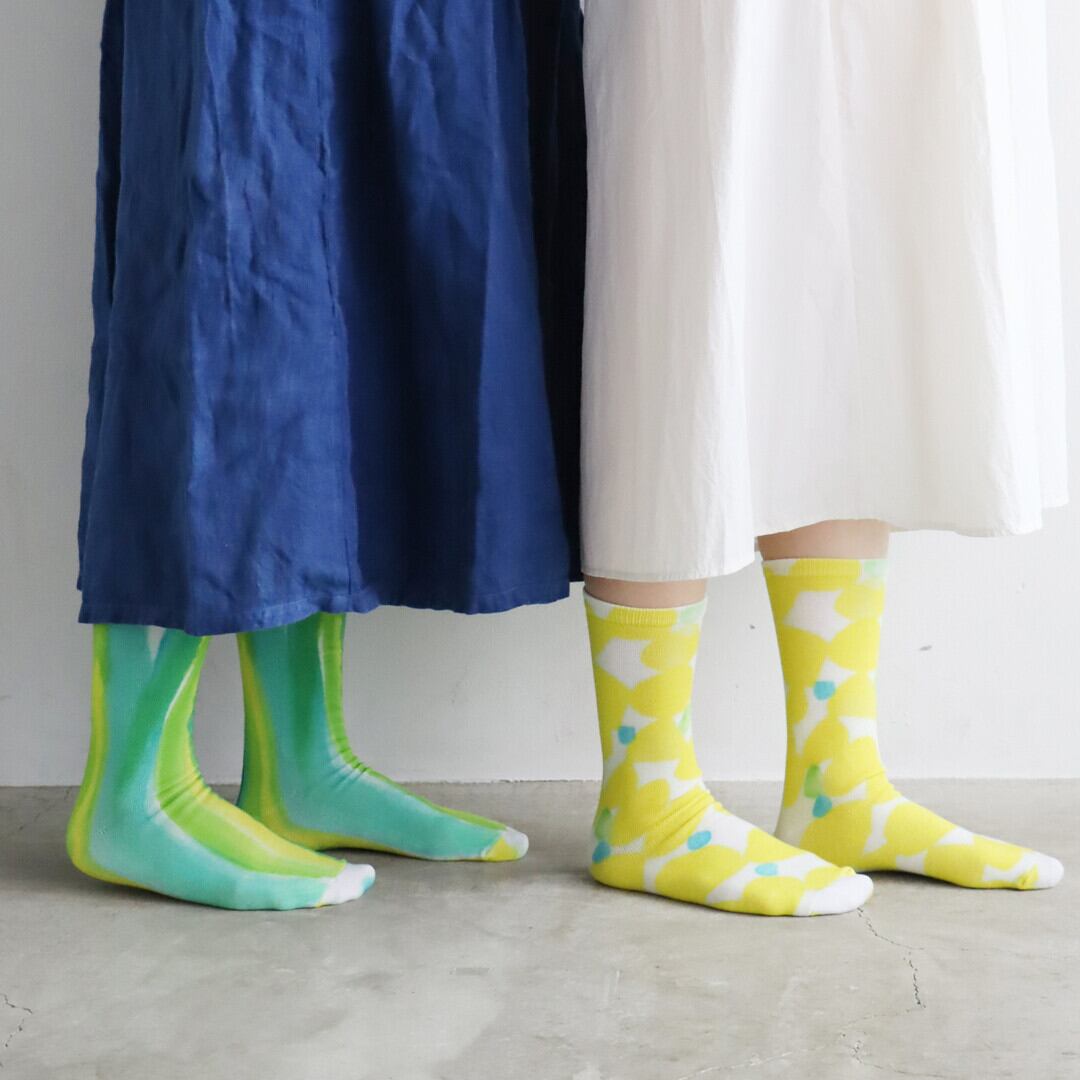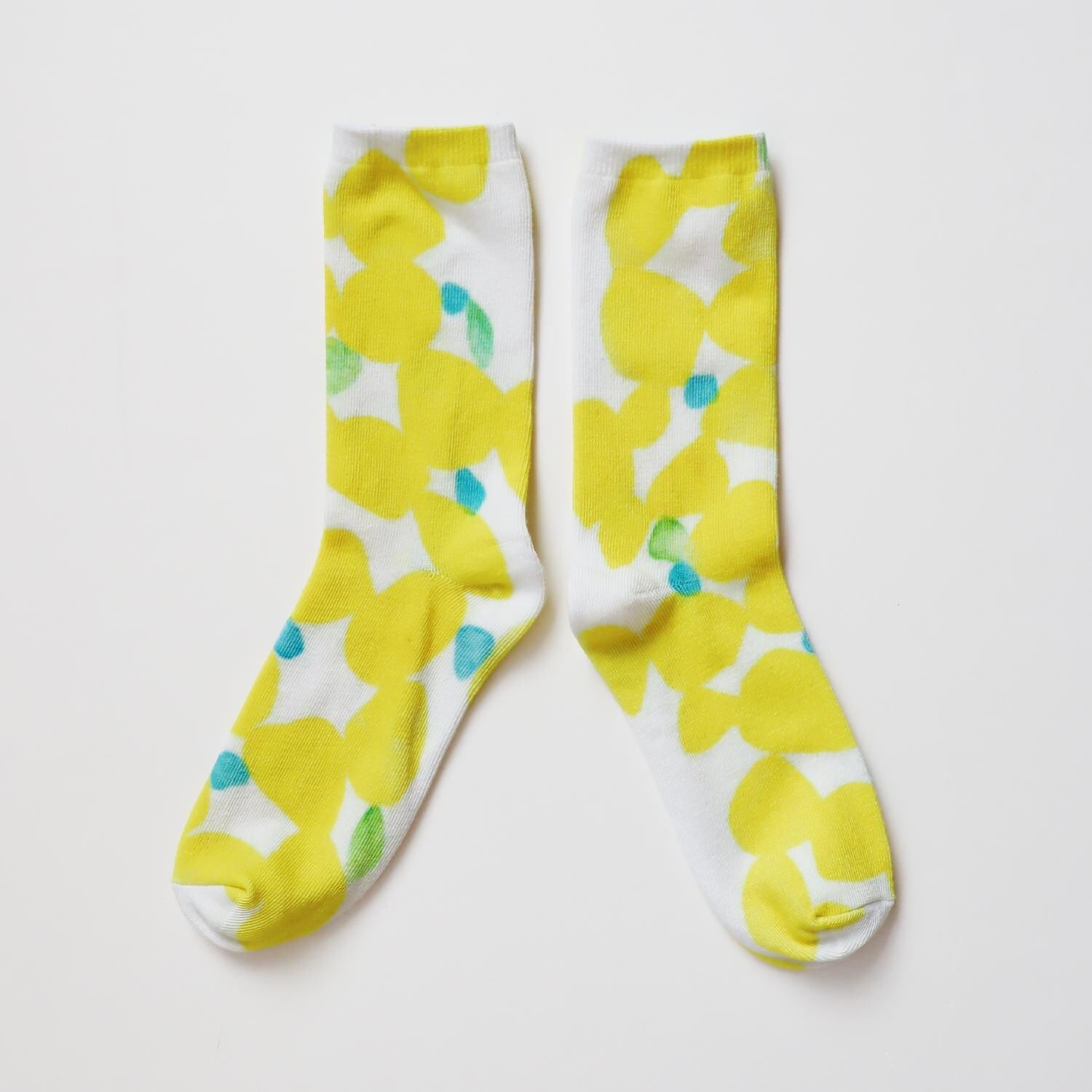 レモンカラーのドローイングが美しいクルーソックス2足組です。