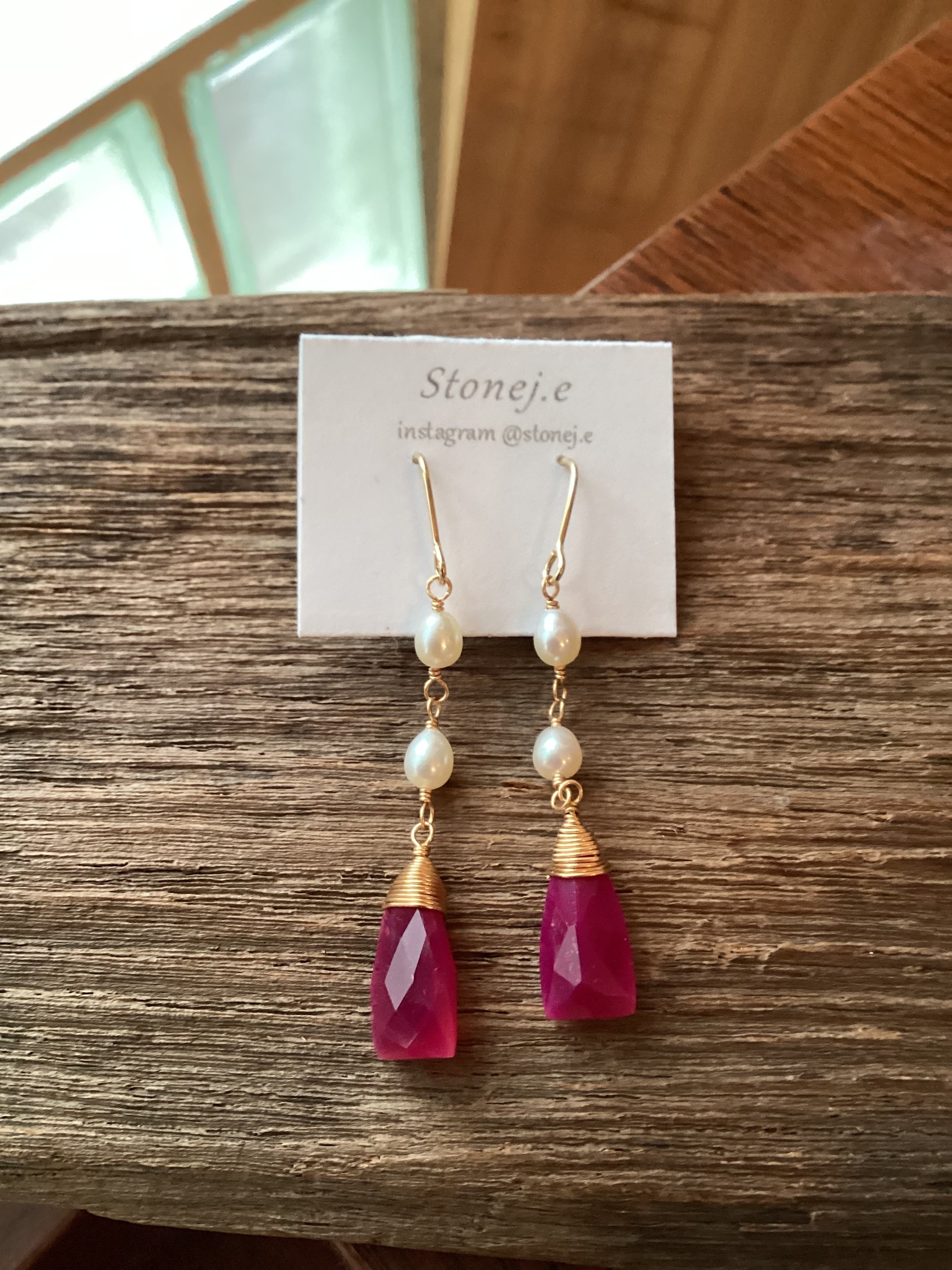 【Stonej.e】フューシャーピンク・淡水パール ピアス 1003