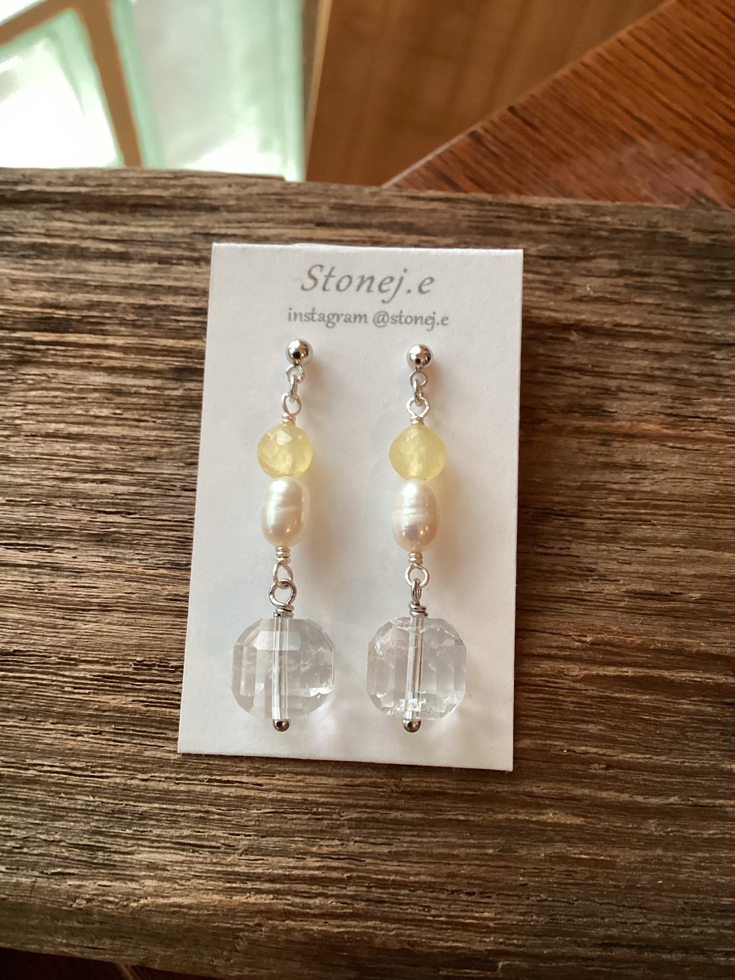 【Stonej.e】クオーツ・パール・イエロージェイド ピアス 1008