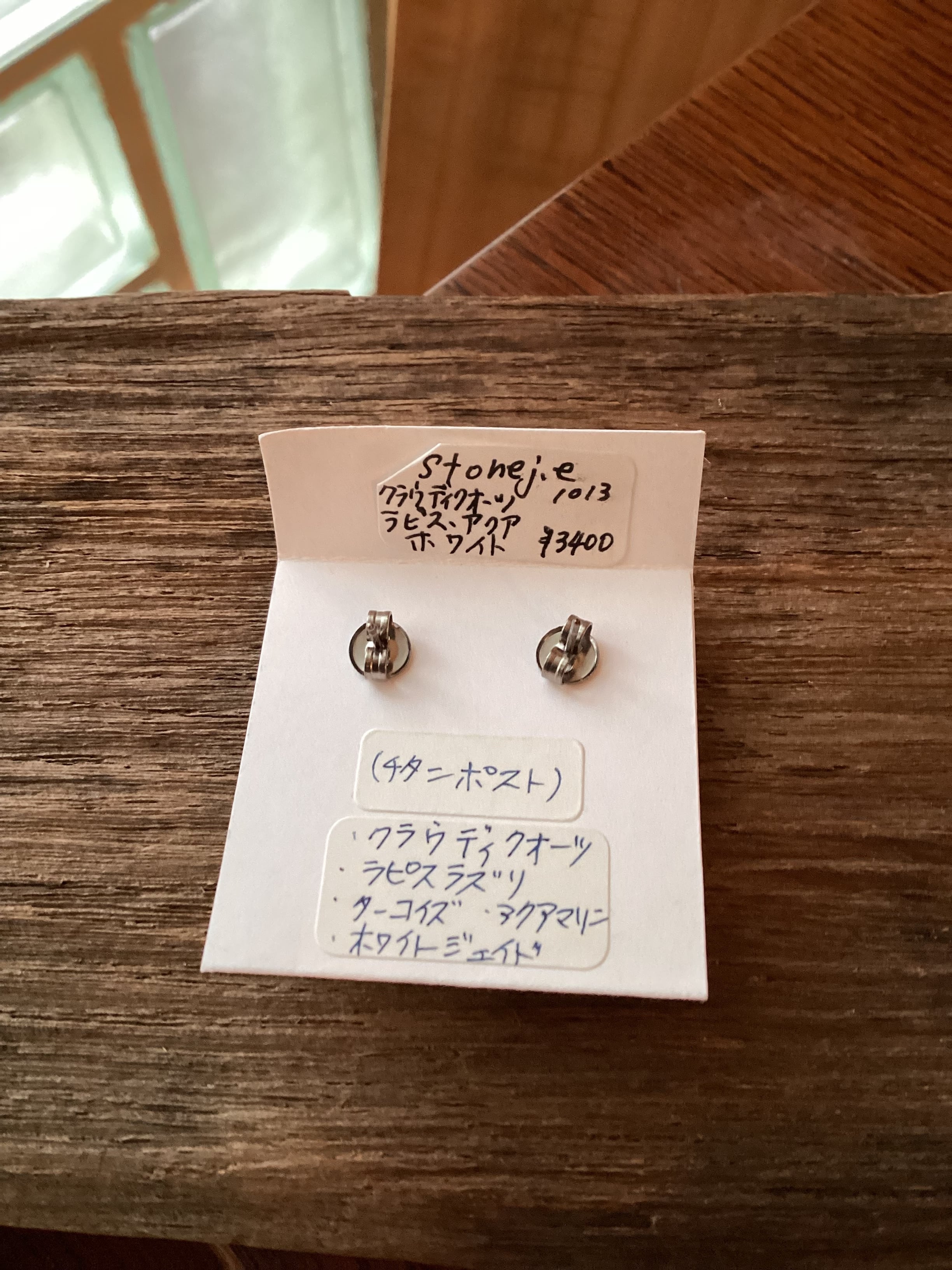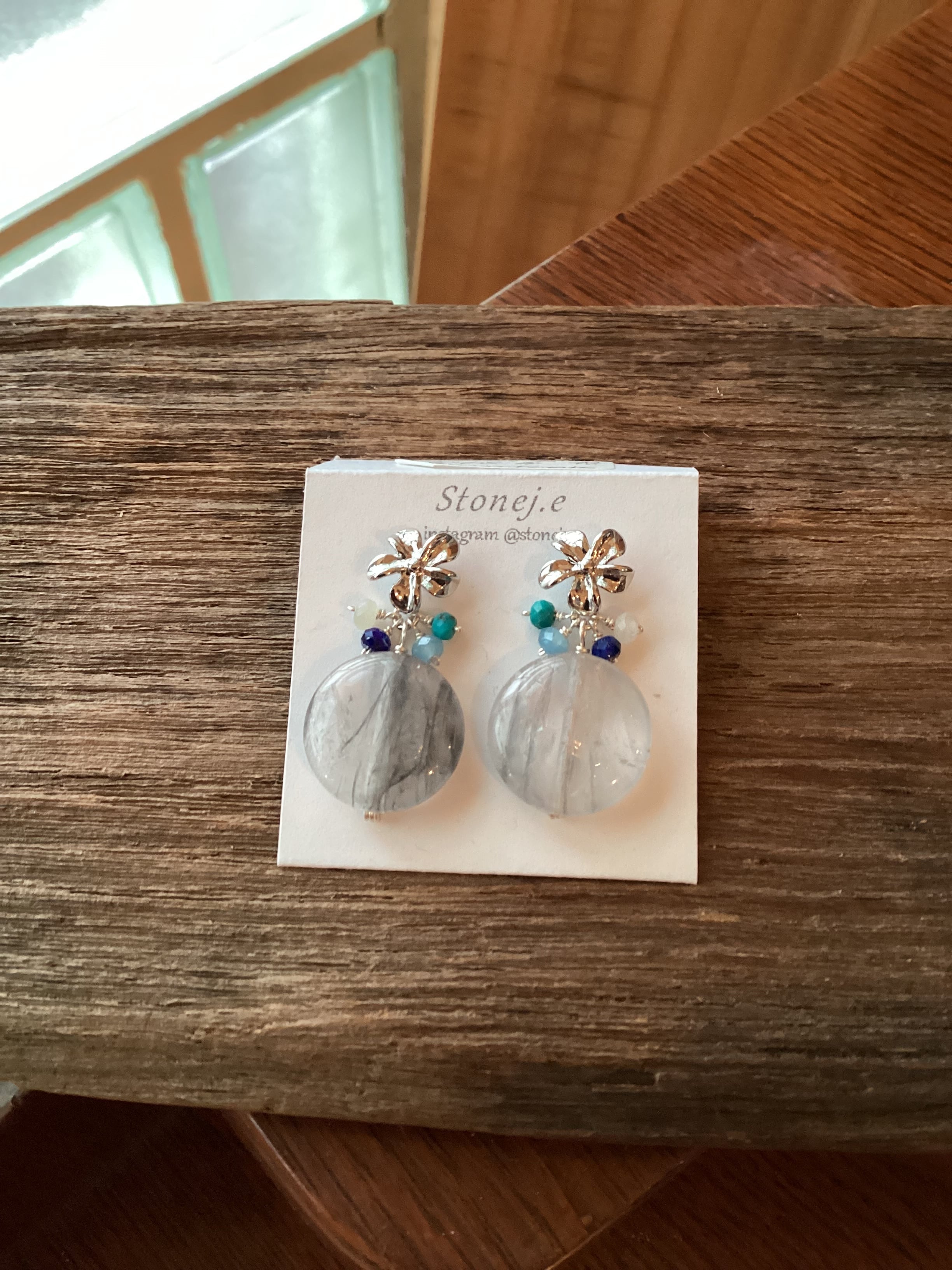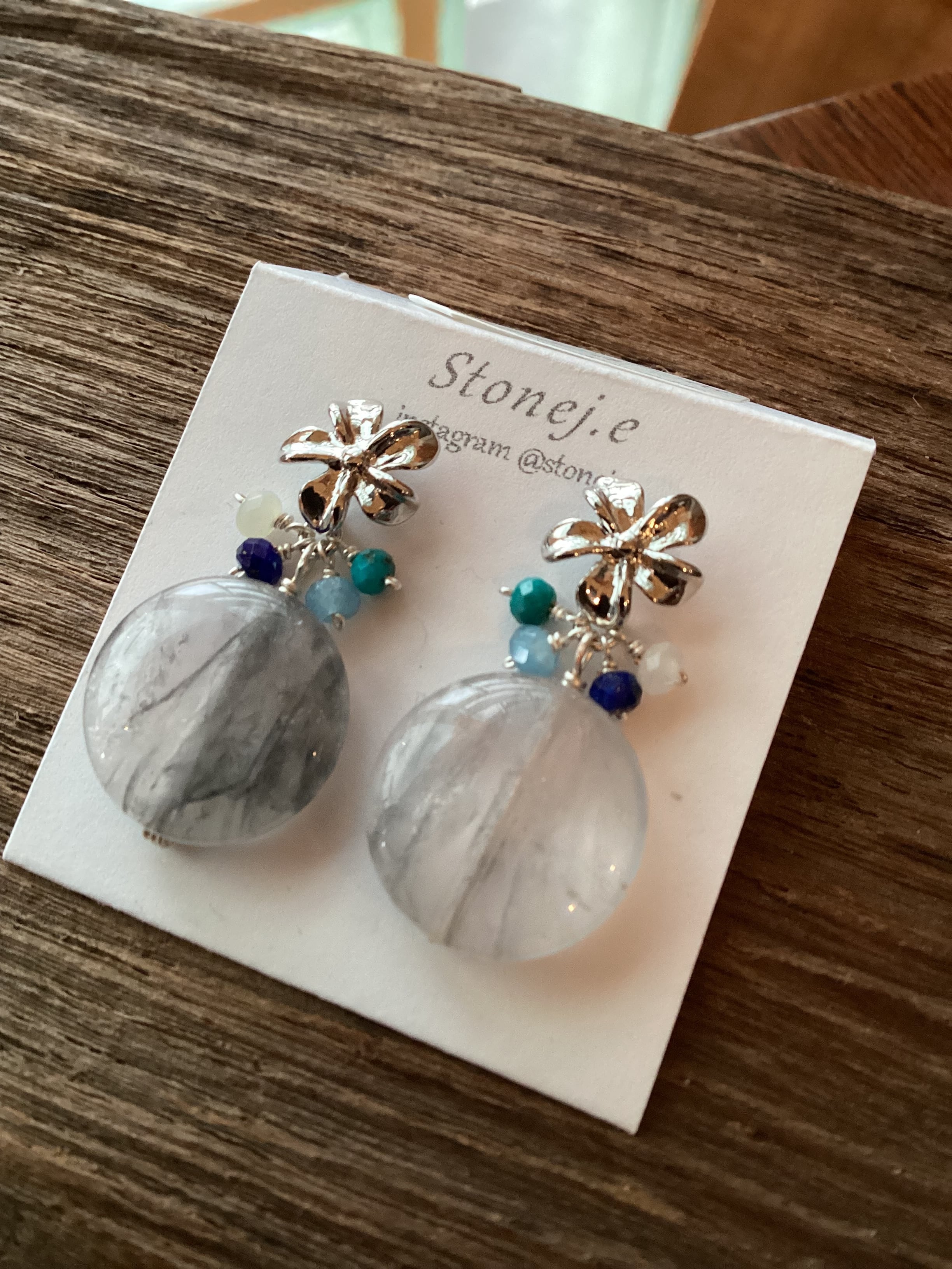 【Stonej.e】クラウディクオーツ・ラピス・アクア・ホワイト ピアス 1013