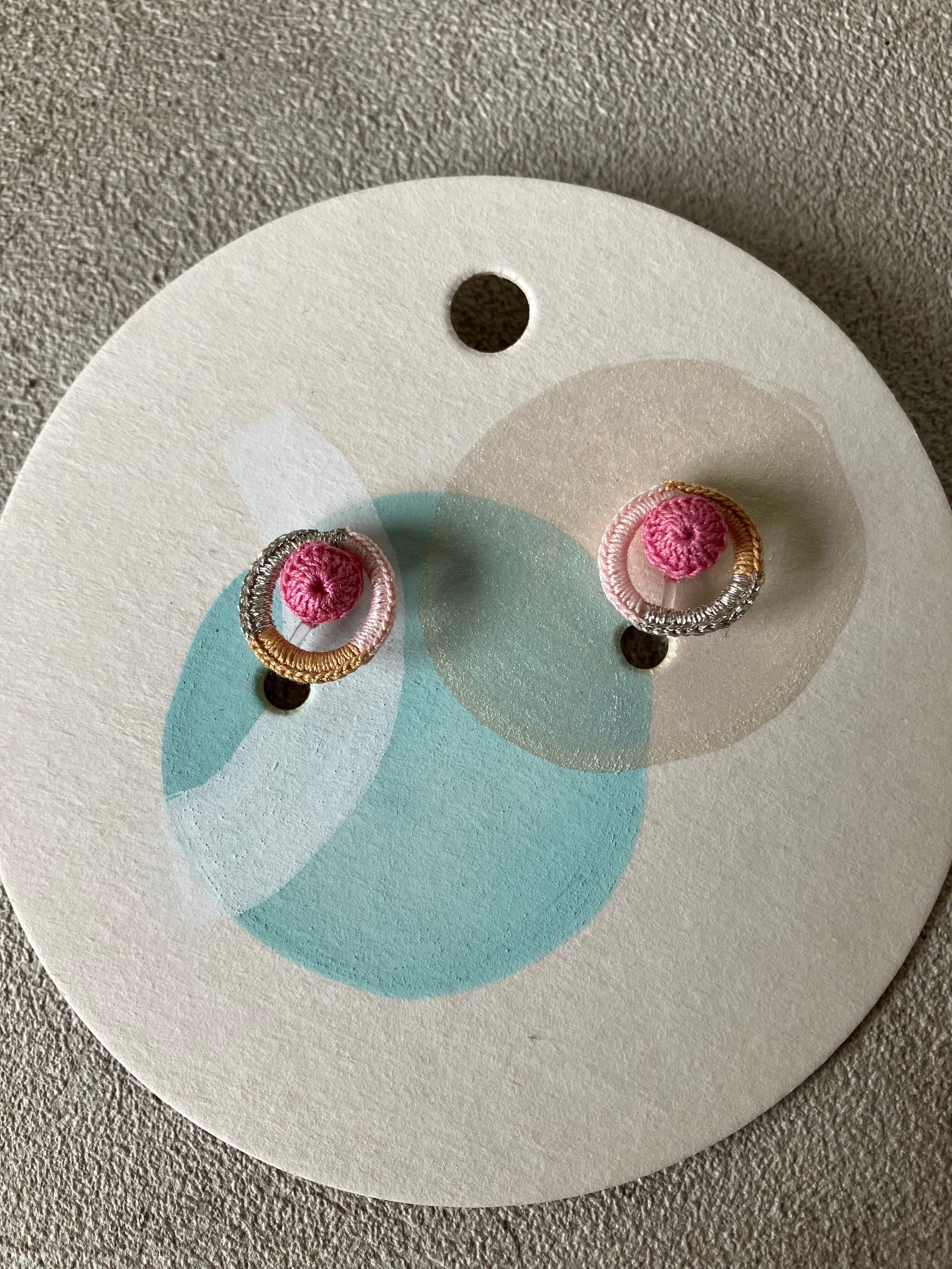 作家 雨と粒さんの糸編みで作られたノンホールピアス。