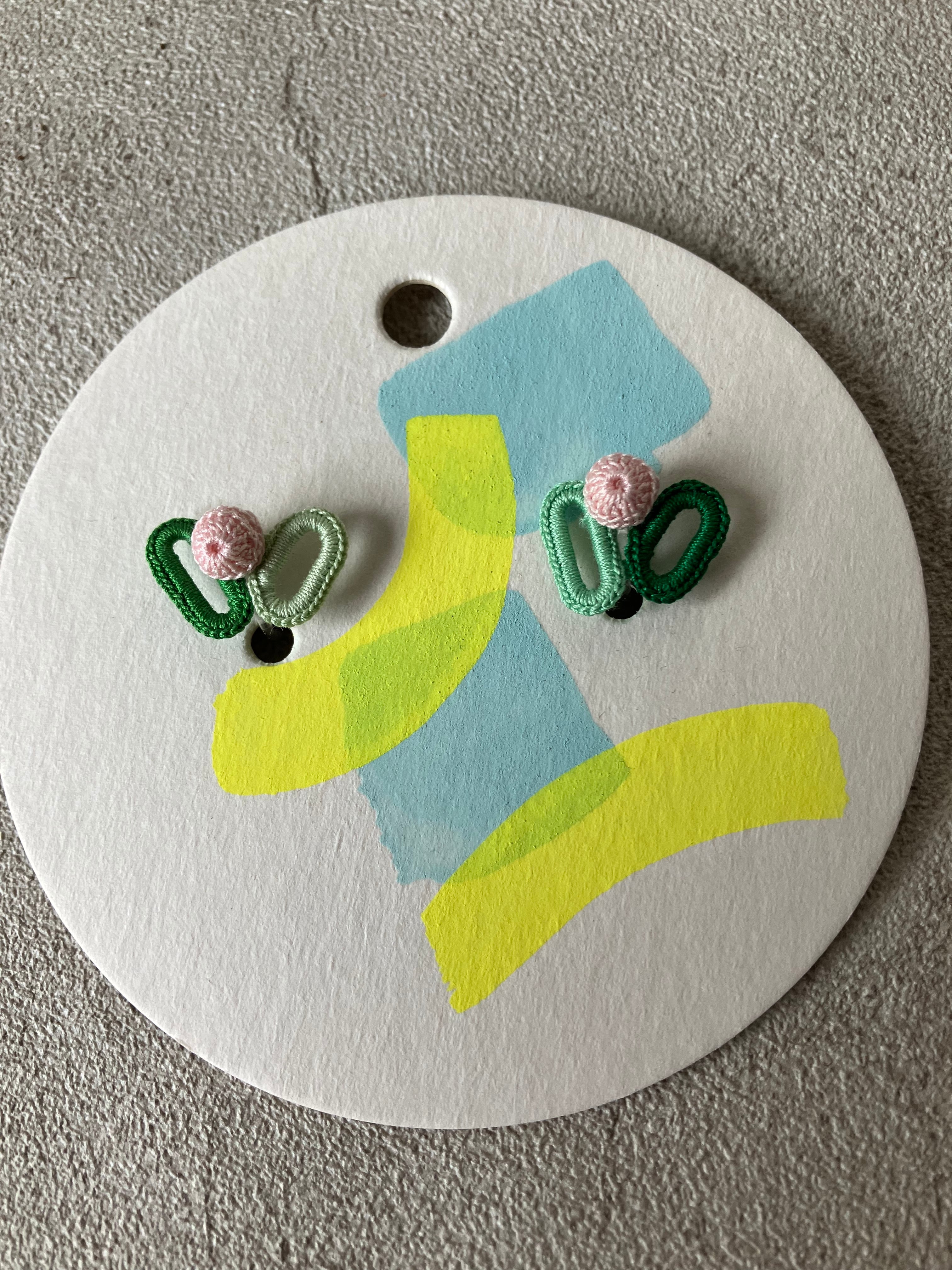 作家 雨と粒さんの糸編みで作られたノンホールピアス。