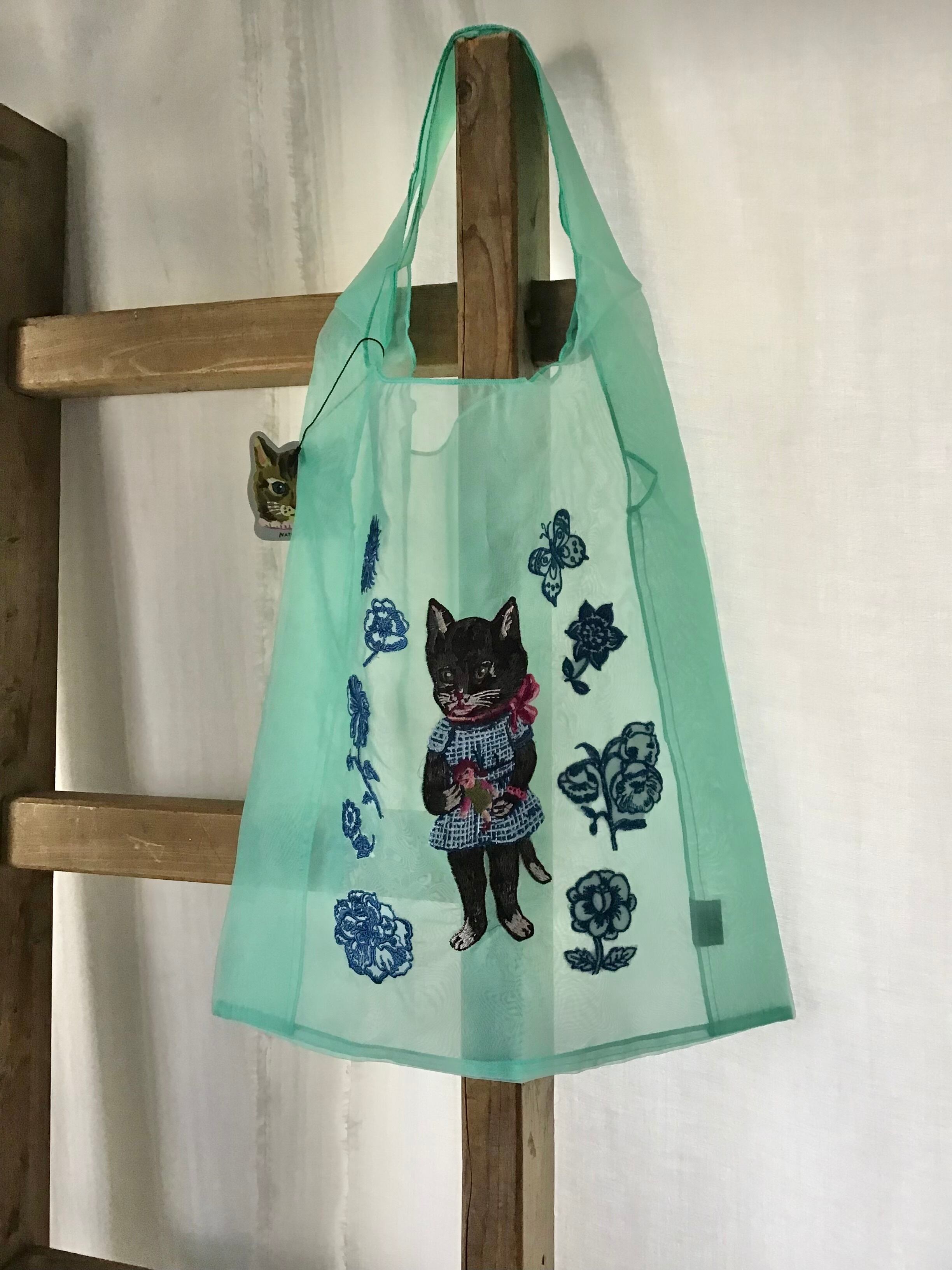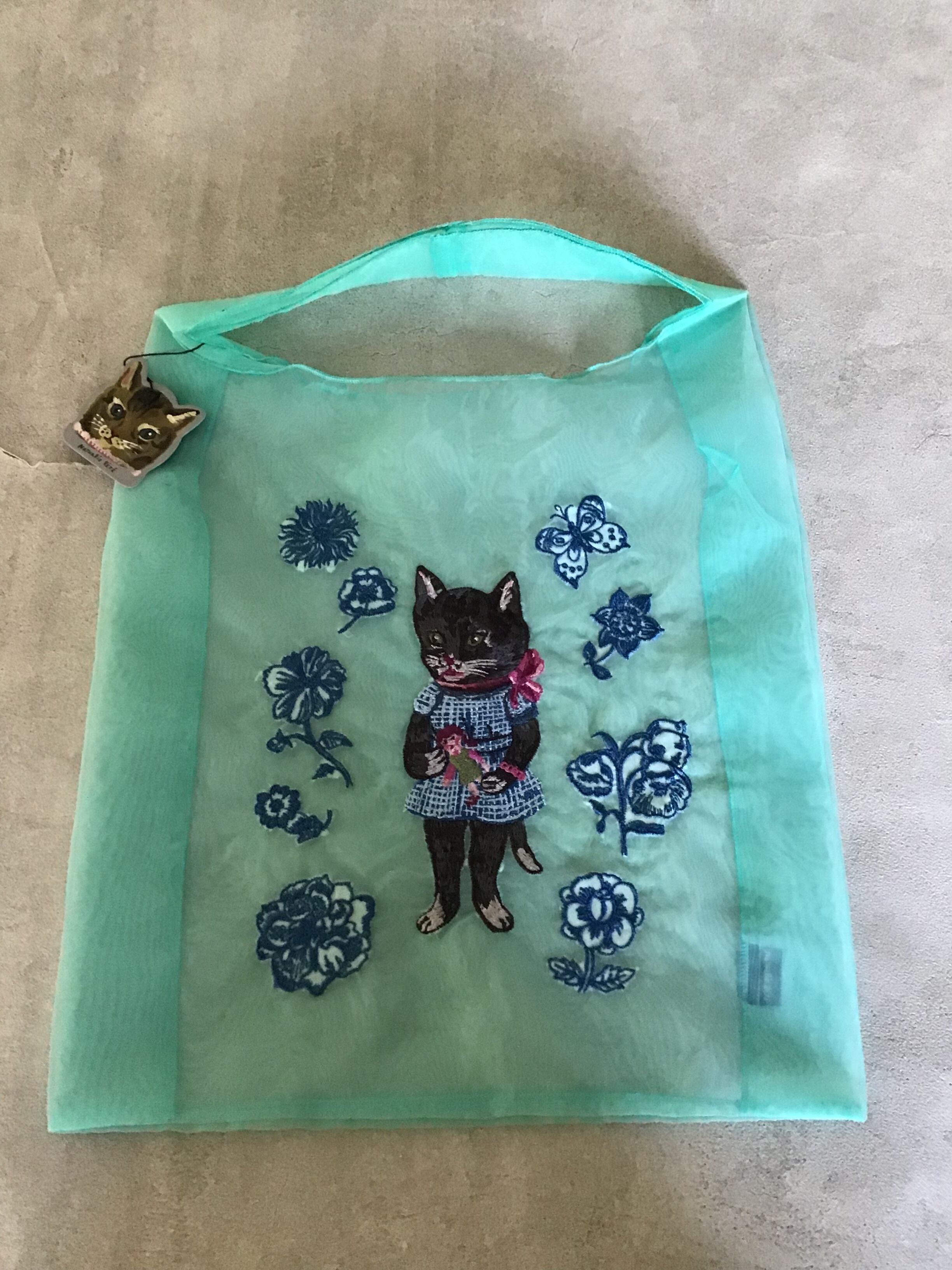ナタリーレテのイラストを贅沢に刺繍で施した、オーガンジー生地のバッグができました。